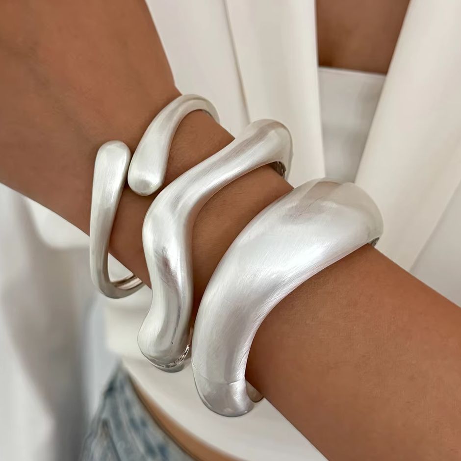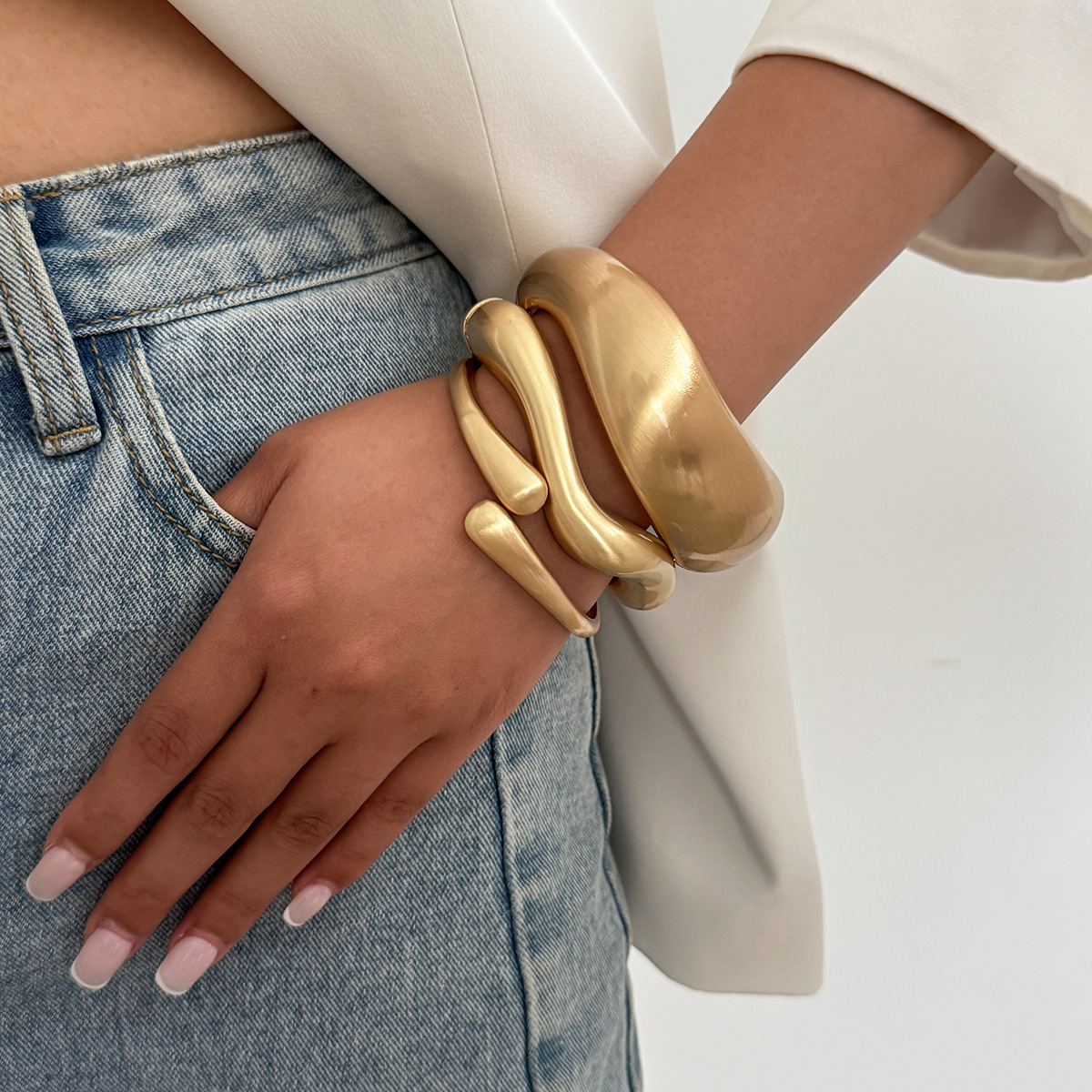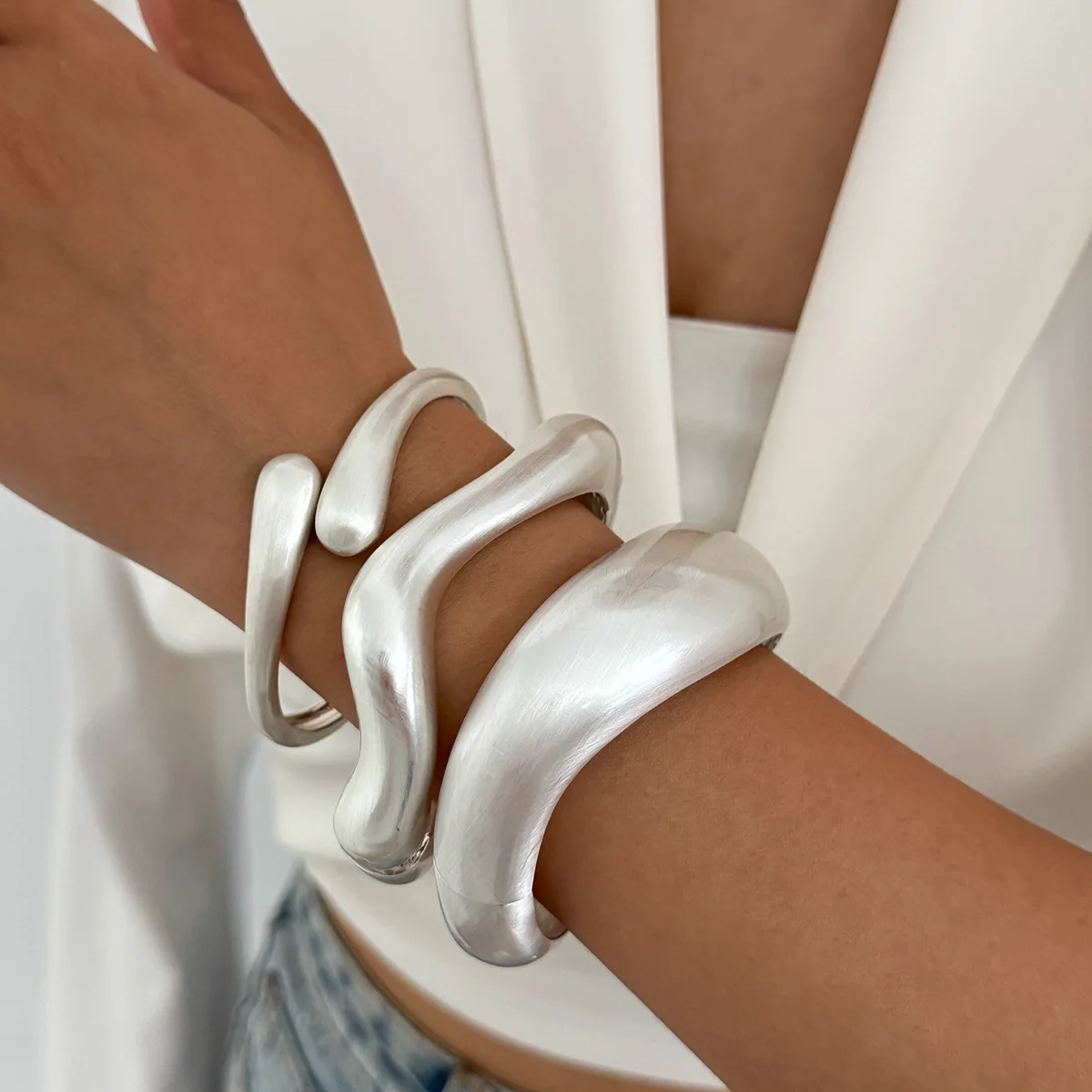 DIEZI Exaggeration Geometric Cuff Wide Bangles Fashion Hip Hop Matte Gold Silver Color Metal Wide Bangles Bracelets Women Men