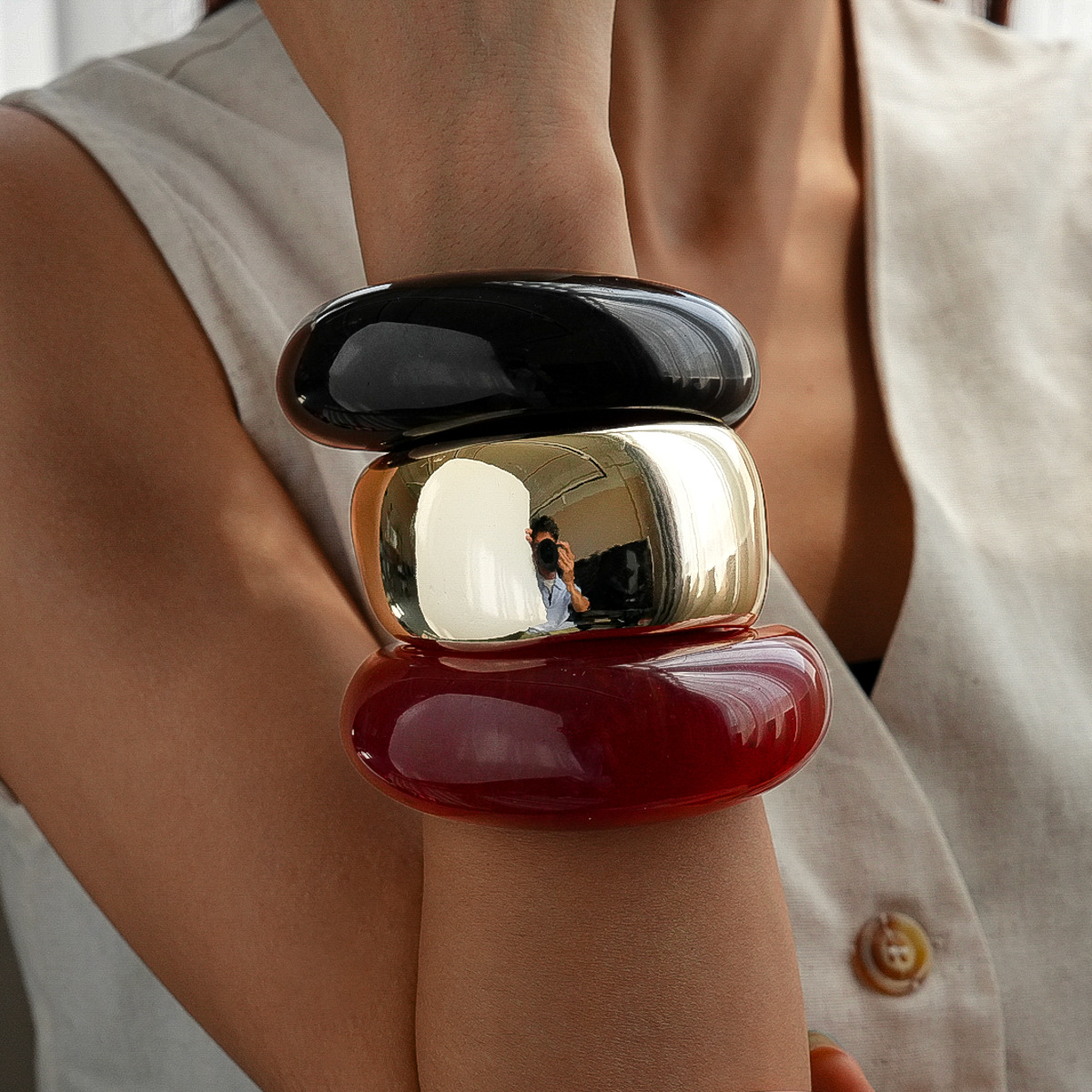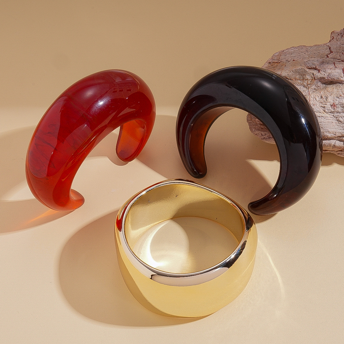DIEZI Exaggeration Geometric Red Brown Acrylic Resin Cuff Bangles Fashion Hip Hop CCB Wide Bangles Bracelets For Women Men