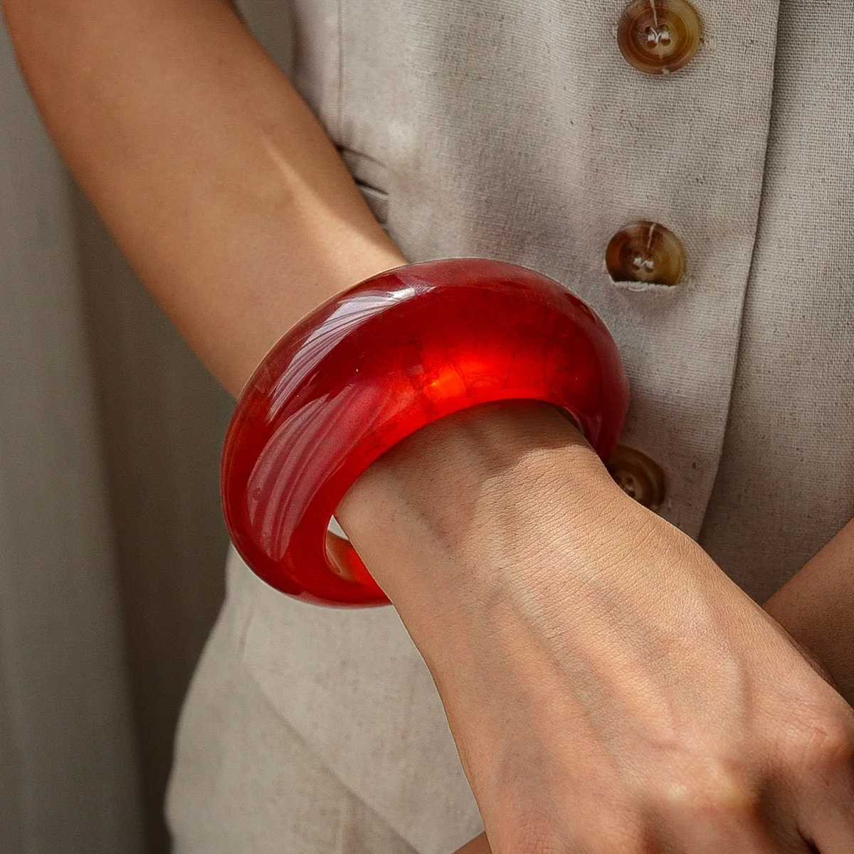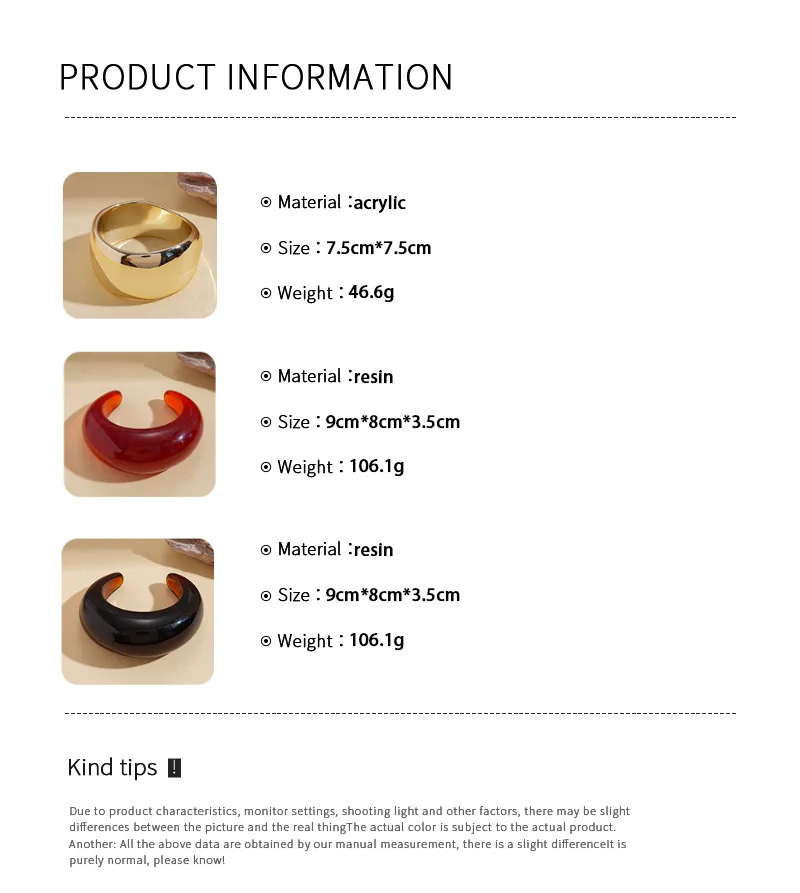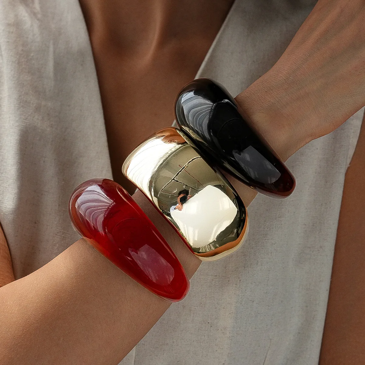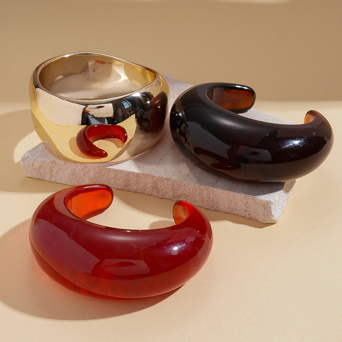 DIEZI Exaggeration Geometric Red Brown Acrylic Resin Cuff Bangles Fashion Hip Hop CCB Wide Bangles Bracelets For Women Men