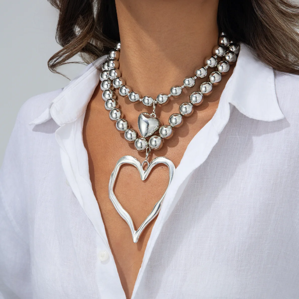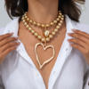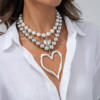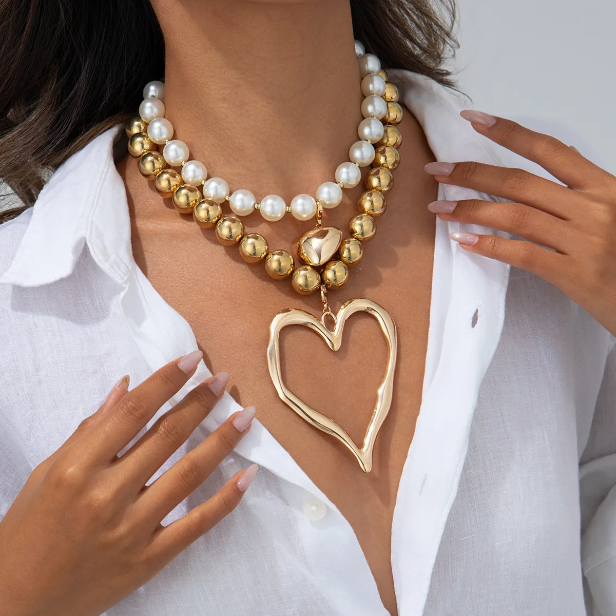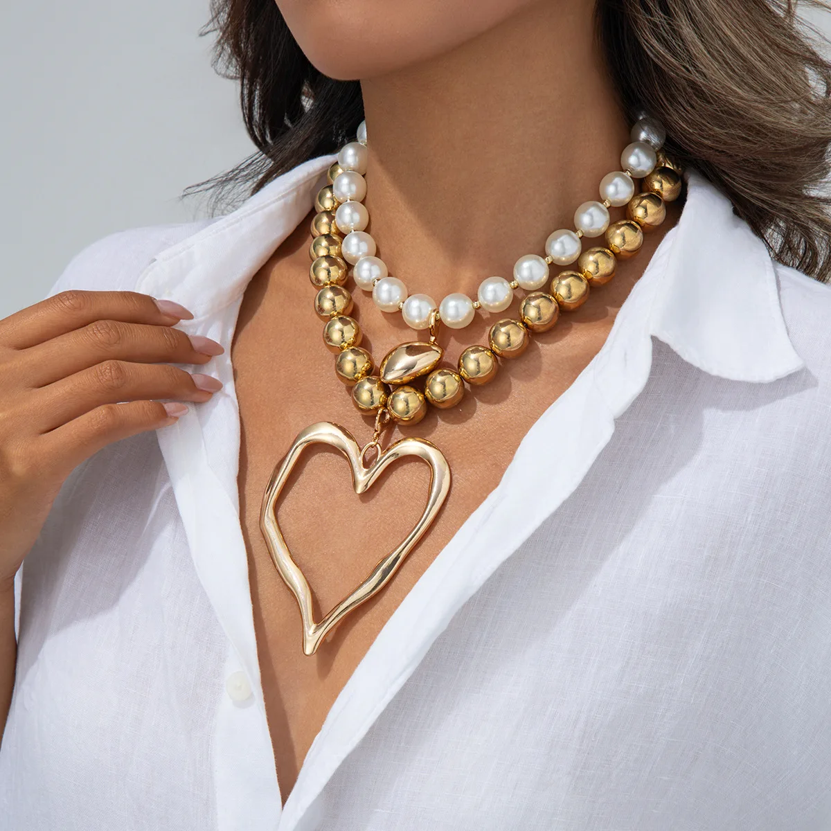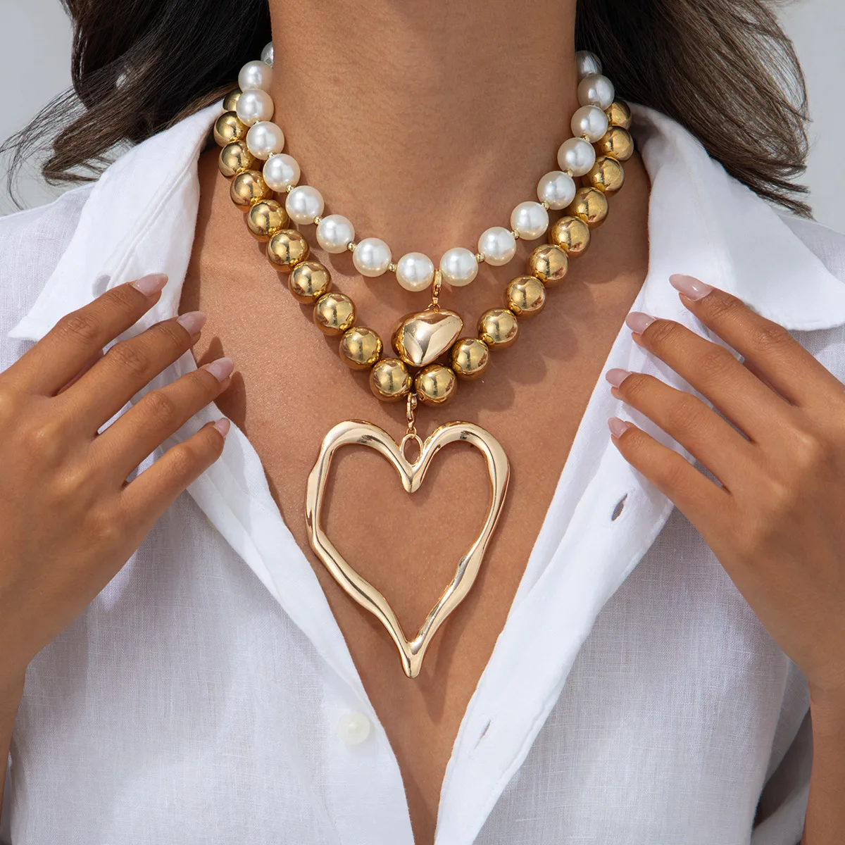 DIEZI Multilaye Exaggerated Steampunk Heart Imitation Pearl Necklace Women Punk Gold Silver Color Statement Necklace Jewelry
