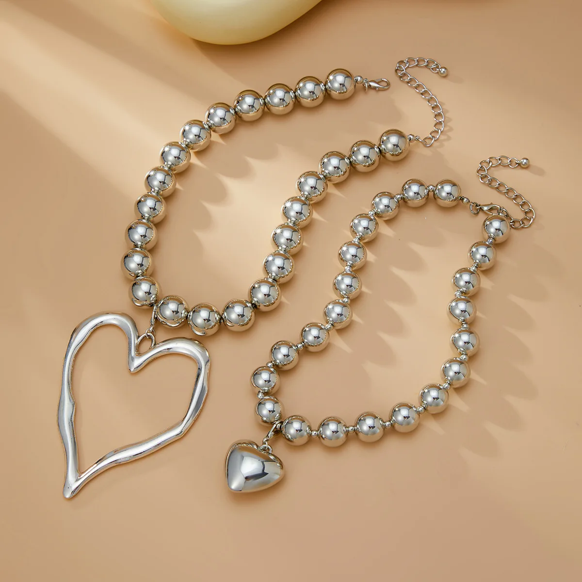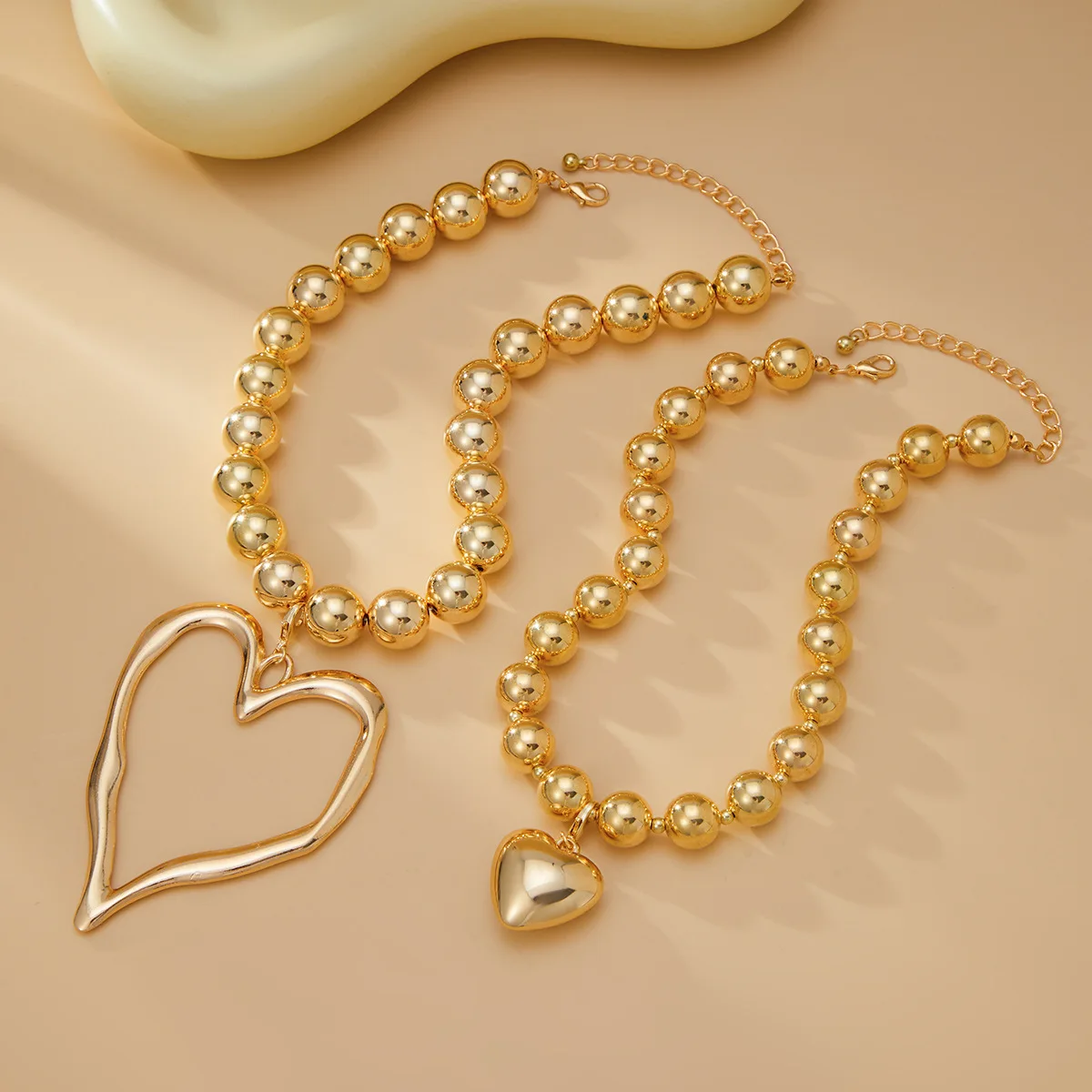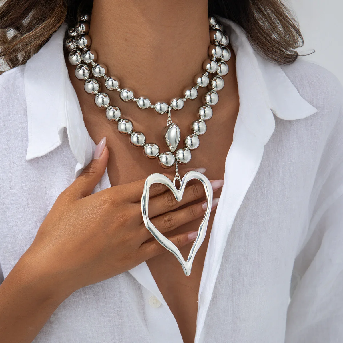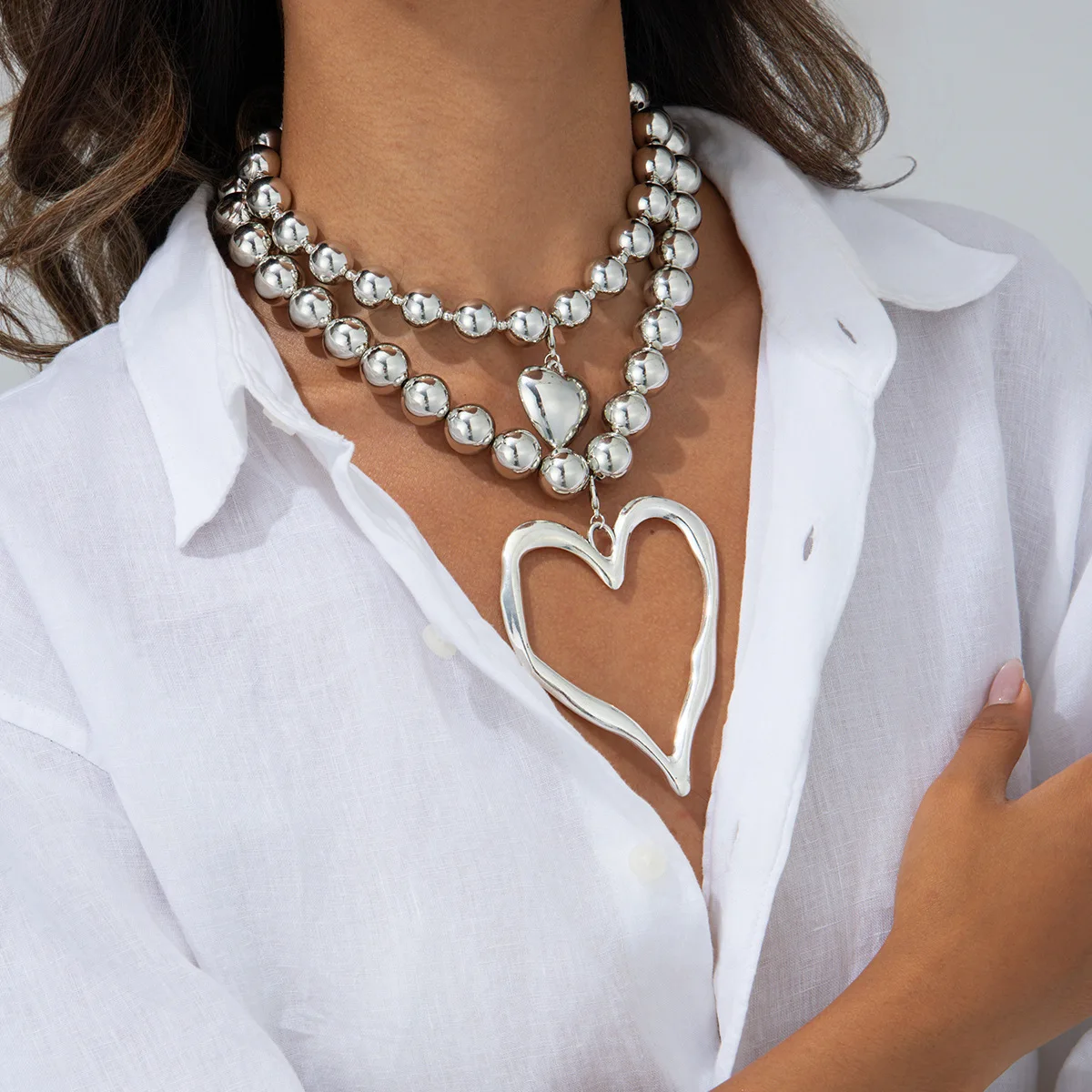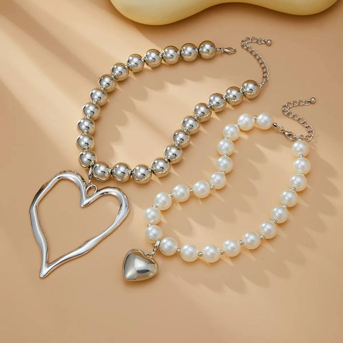 DIEZI Multilaye Exaggerated Steampunk Heart Imitation Pearl Necklace Women Punk Gold Silver Color Statement Necklace Jewelry