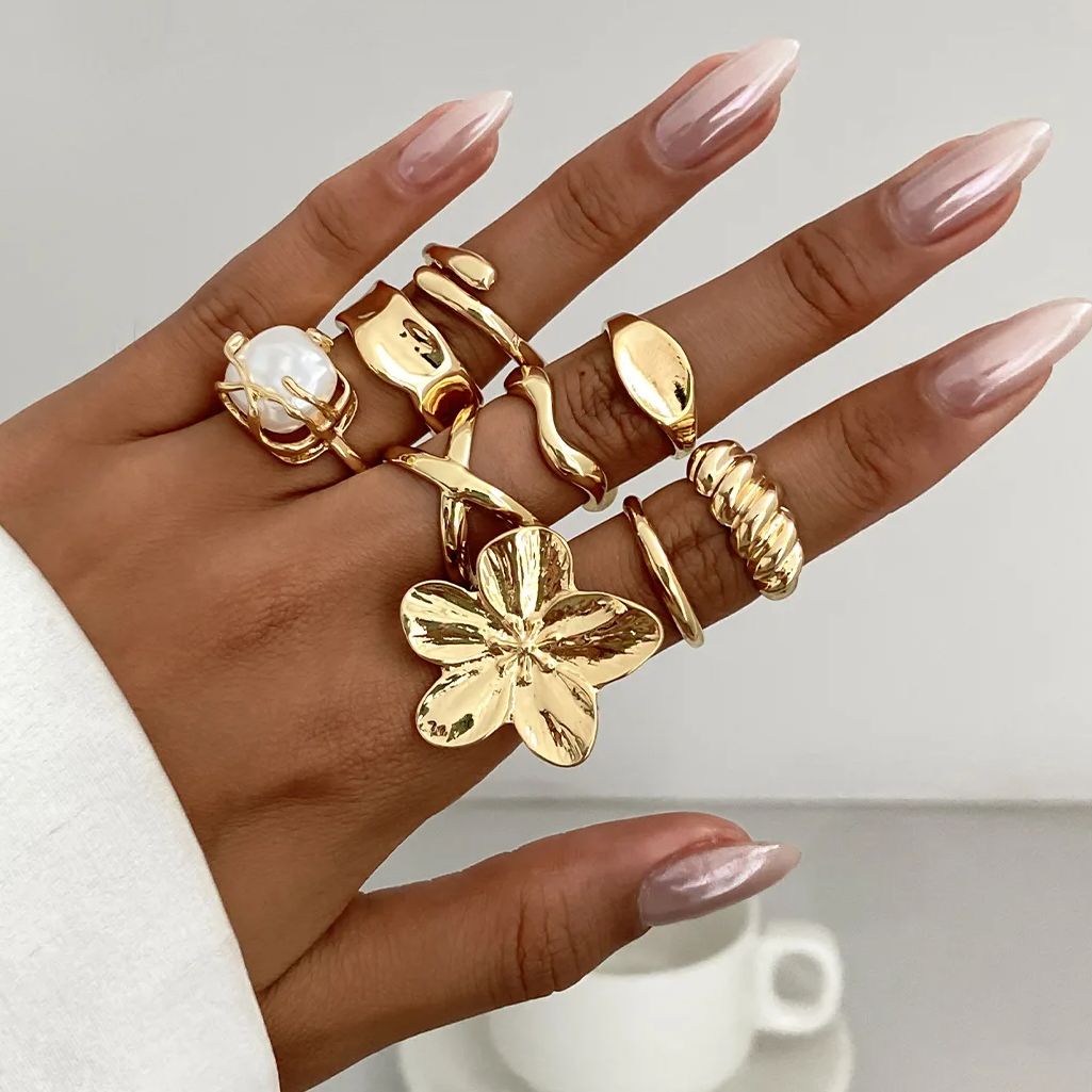 DIEZI One Set Bohemian Baroque Pearl Flower Knuckle Rings For Women Summer Bech Style Vintage Gold Silver Color Open Joint Ring