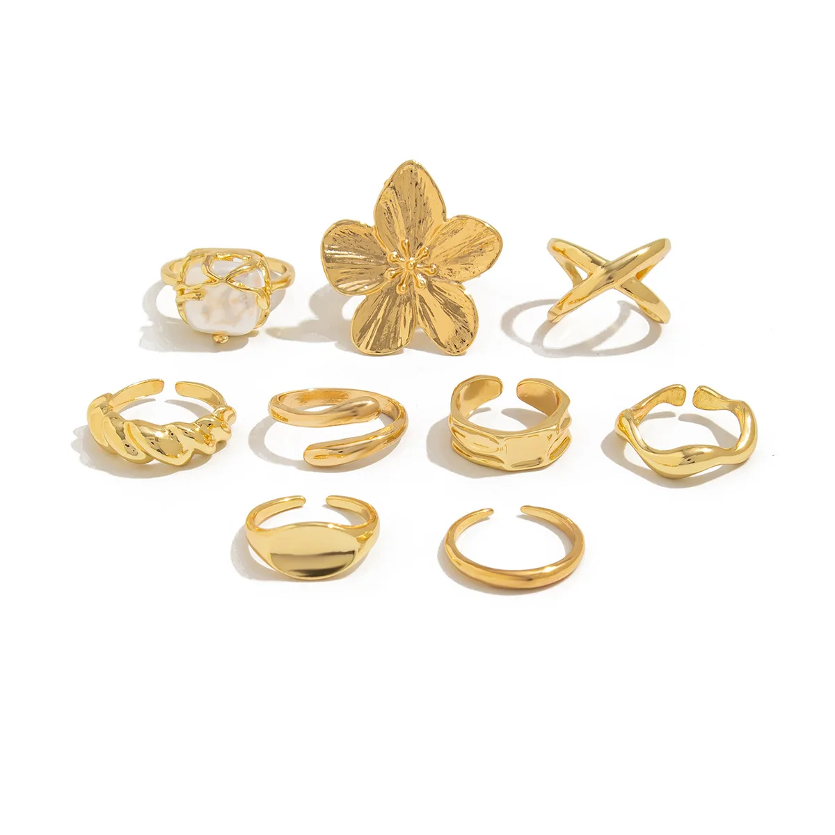 DIEZI One Set Bohemian Baroque Pearl Flower Knuckle Rings For Women Summer Bech Style Vintage Gold Silver Color Open Joint Ring