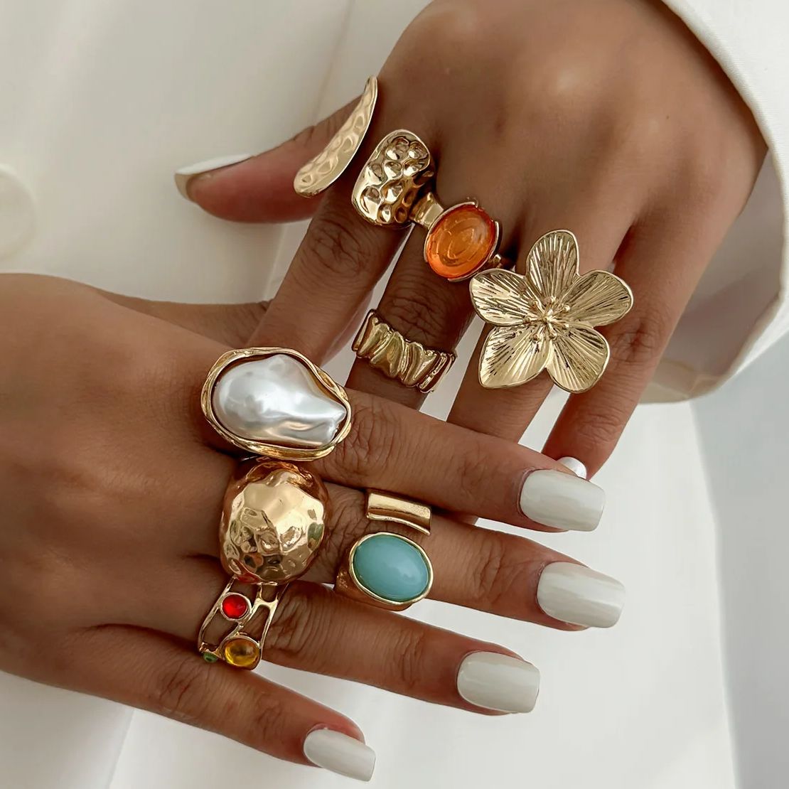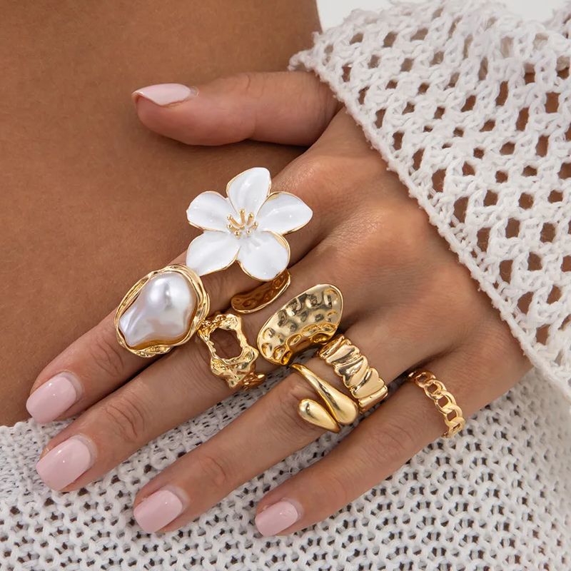 DIEZI One Set Girls Baroque Pearl Flower Rings For Women Men Punk Vintage Gold Silver Color Geometric Knuckle Joint Ring Jewelry