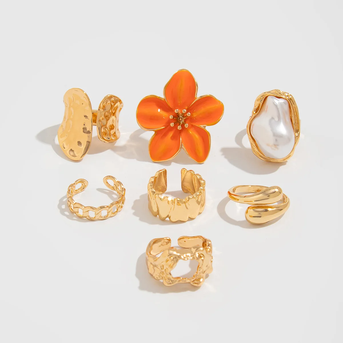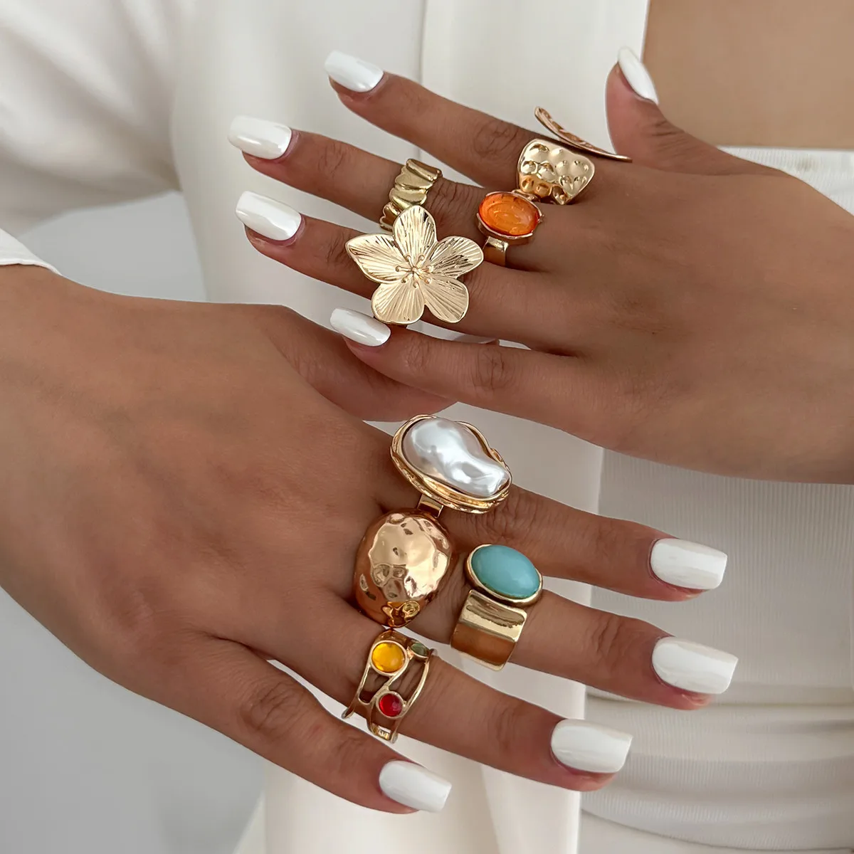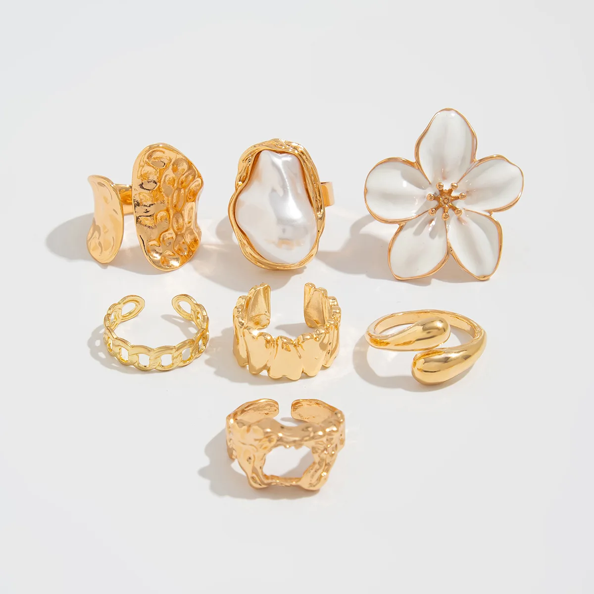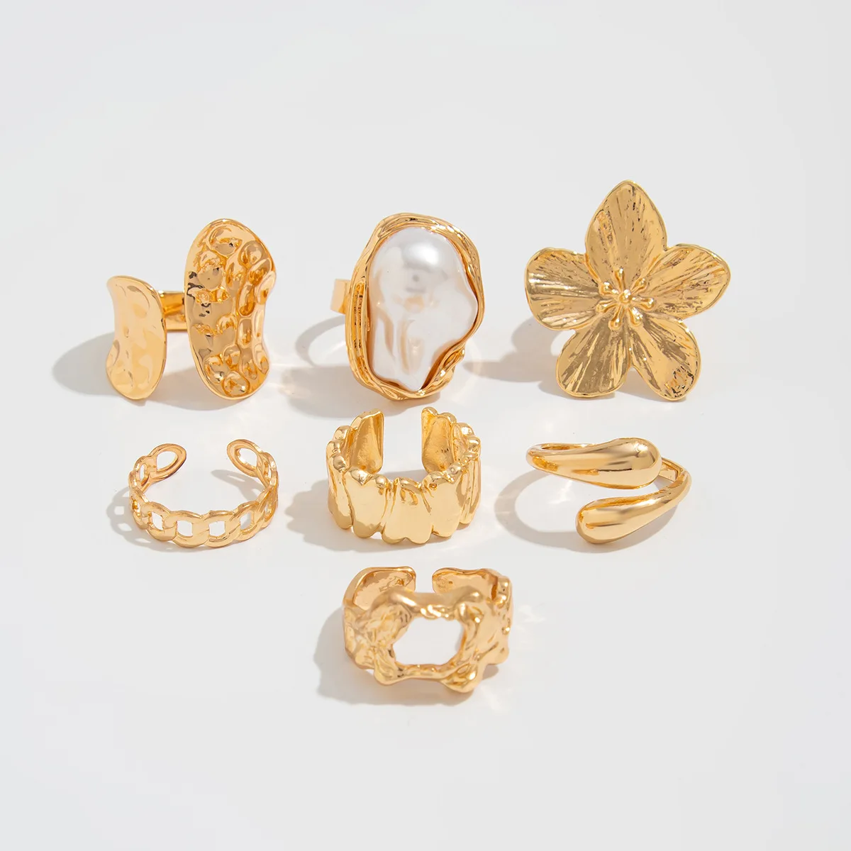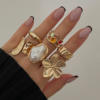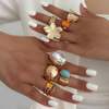 DIEZI One Set Girls Baroque Pearl Flower Rings For Women Men Punk Vintage Gold Silver Color Geometric Knuckle Joint Ring Jewelry