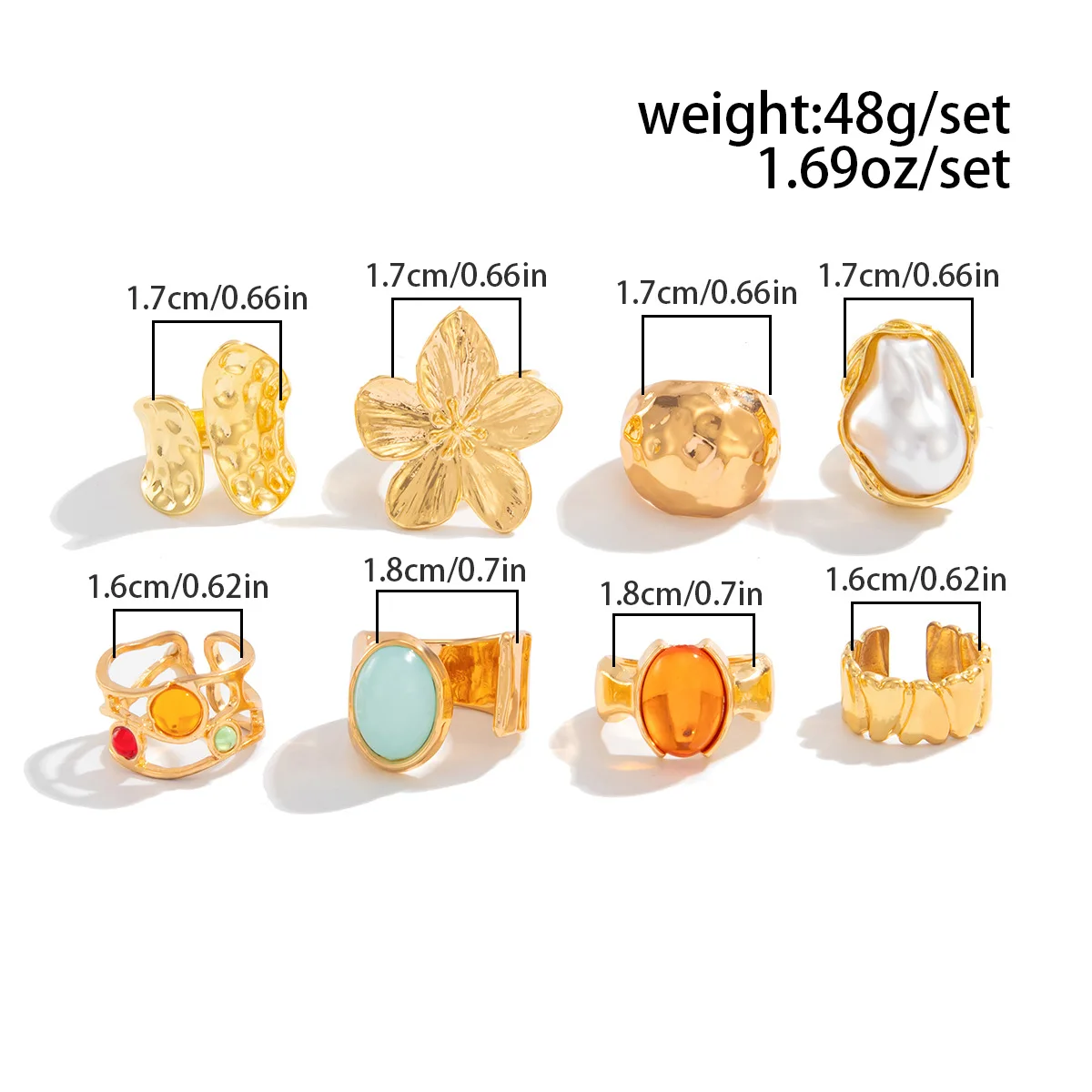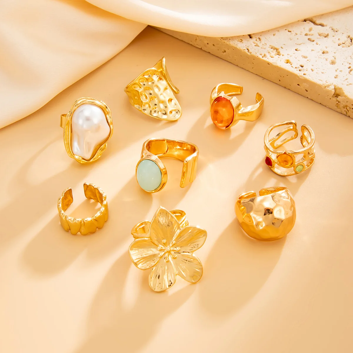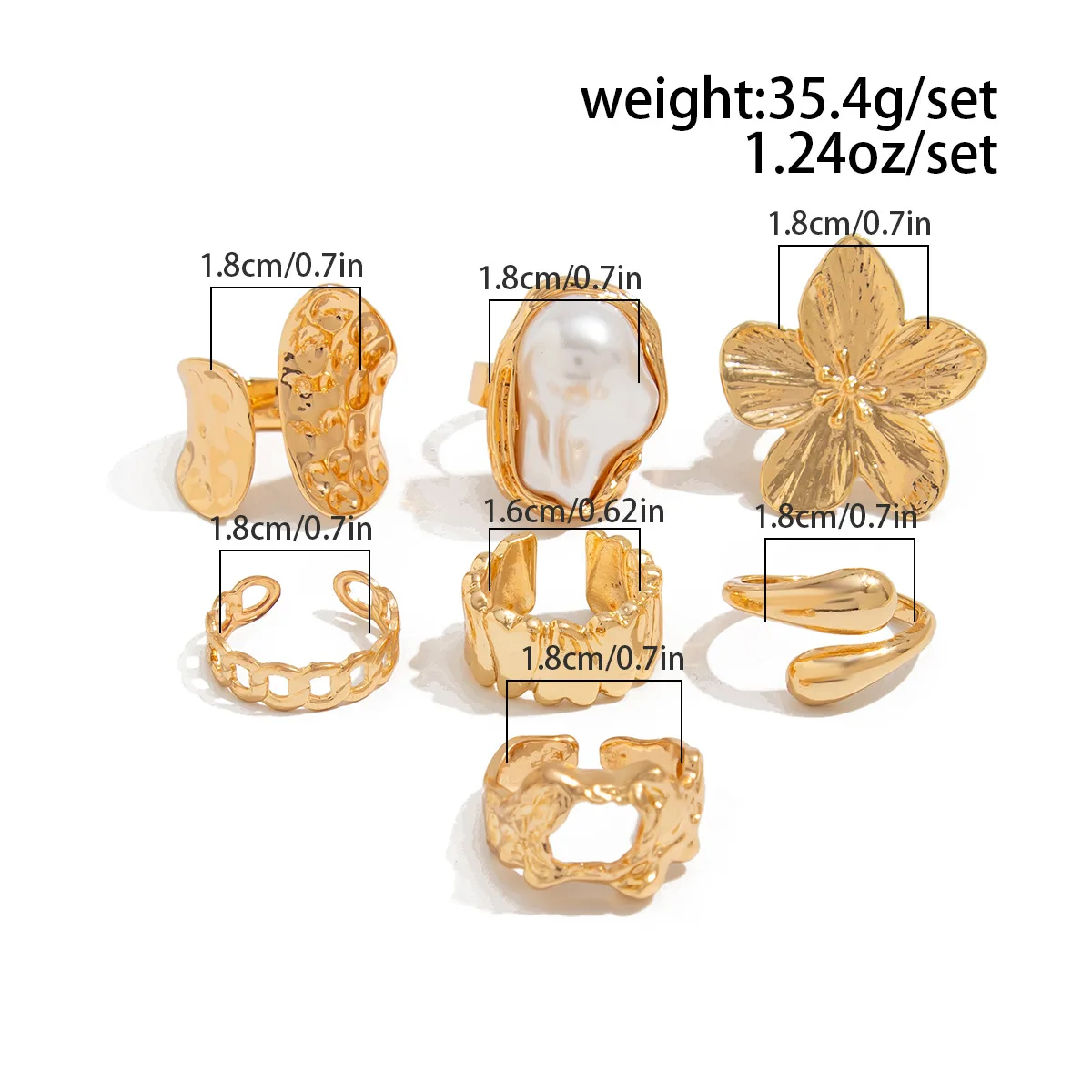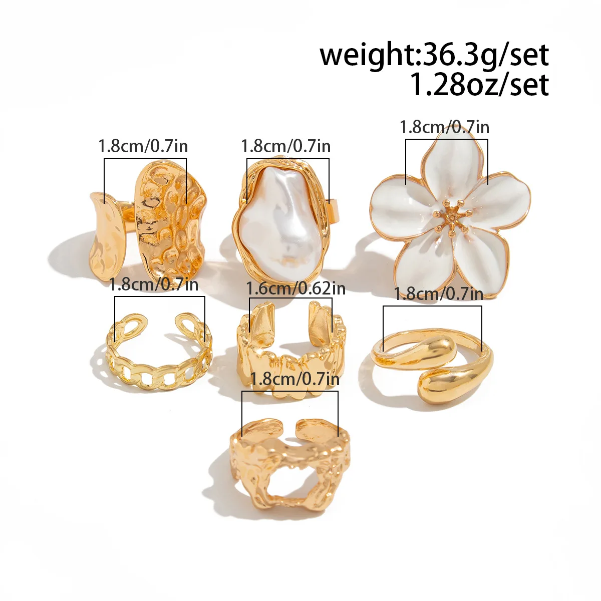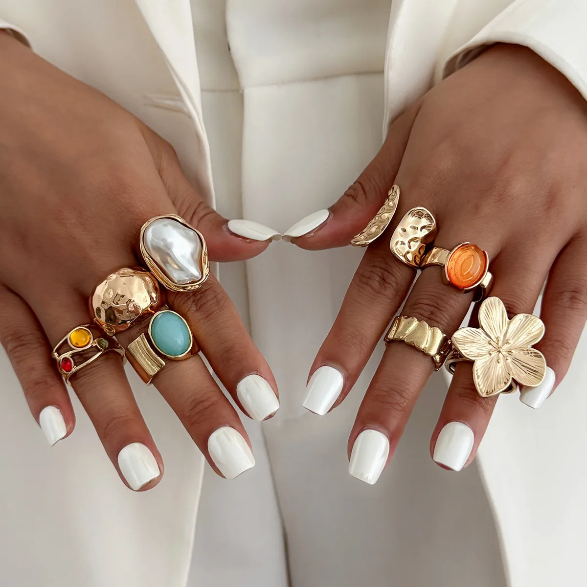 DIEZI One Set Girls Baroque Pearl Flower Rings For Women Men Punk Vintage Gold Silver Color Geometric Knuckle Joint Ring Jewelry