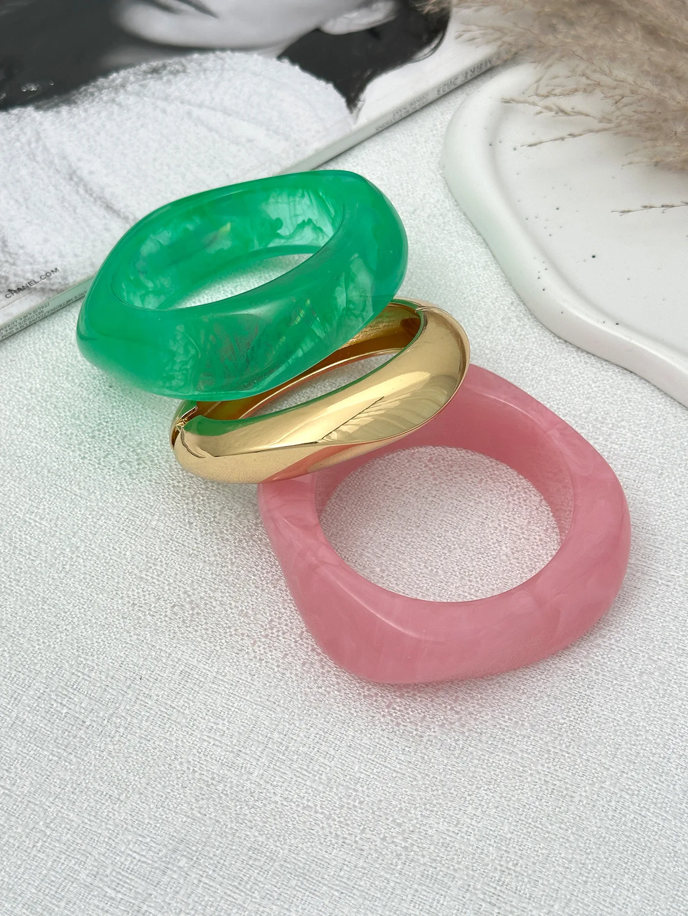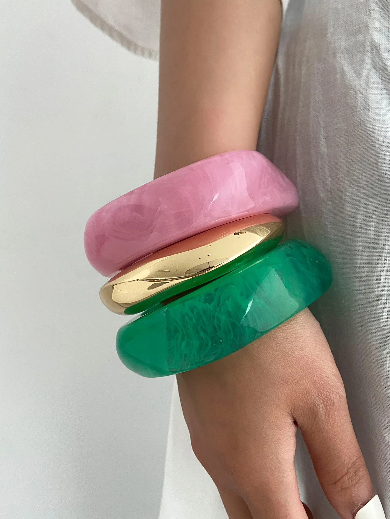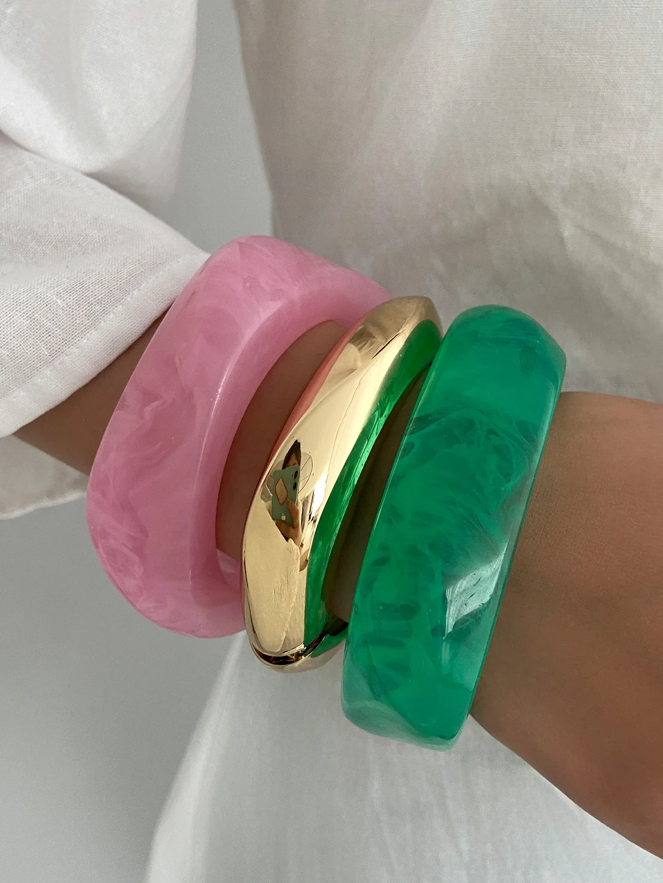 DIEZI Sweet Cool Punk Pink Green Acrylic Resin Wide Bangles Vintage Fashion Gold Color Bracelet Bangle Women Men Girls Jewelry