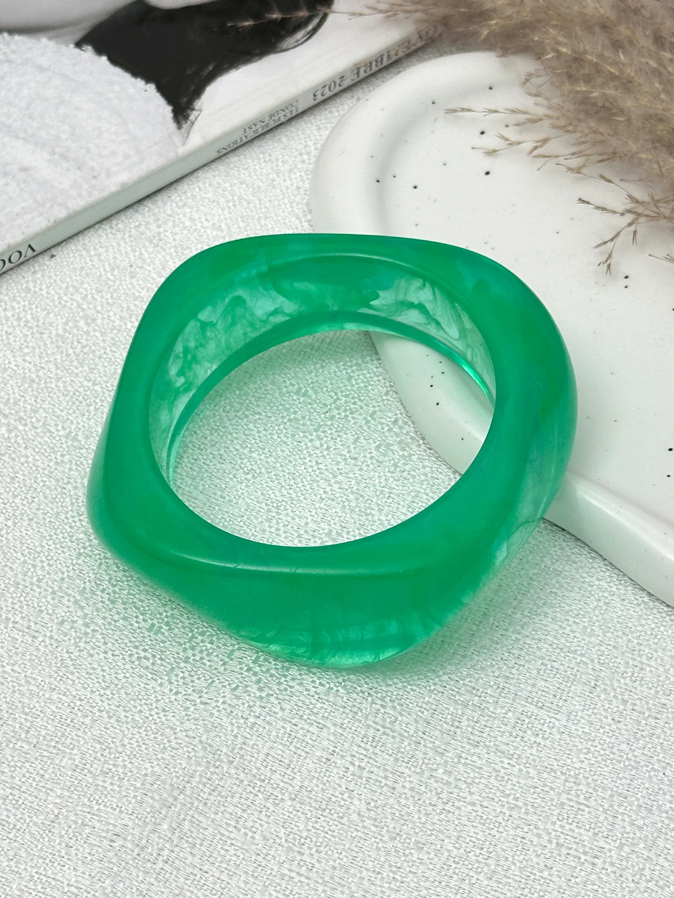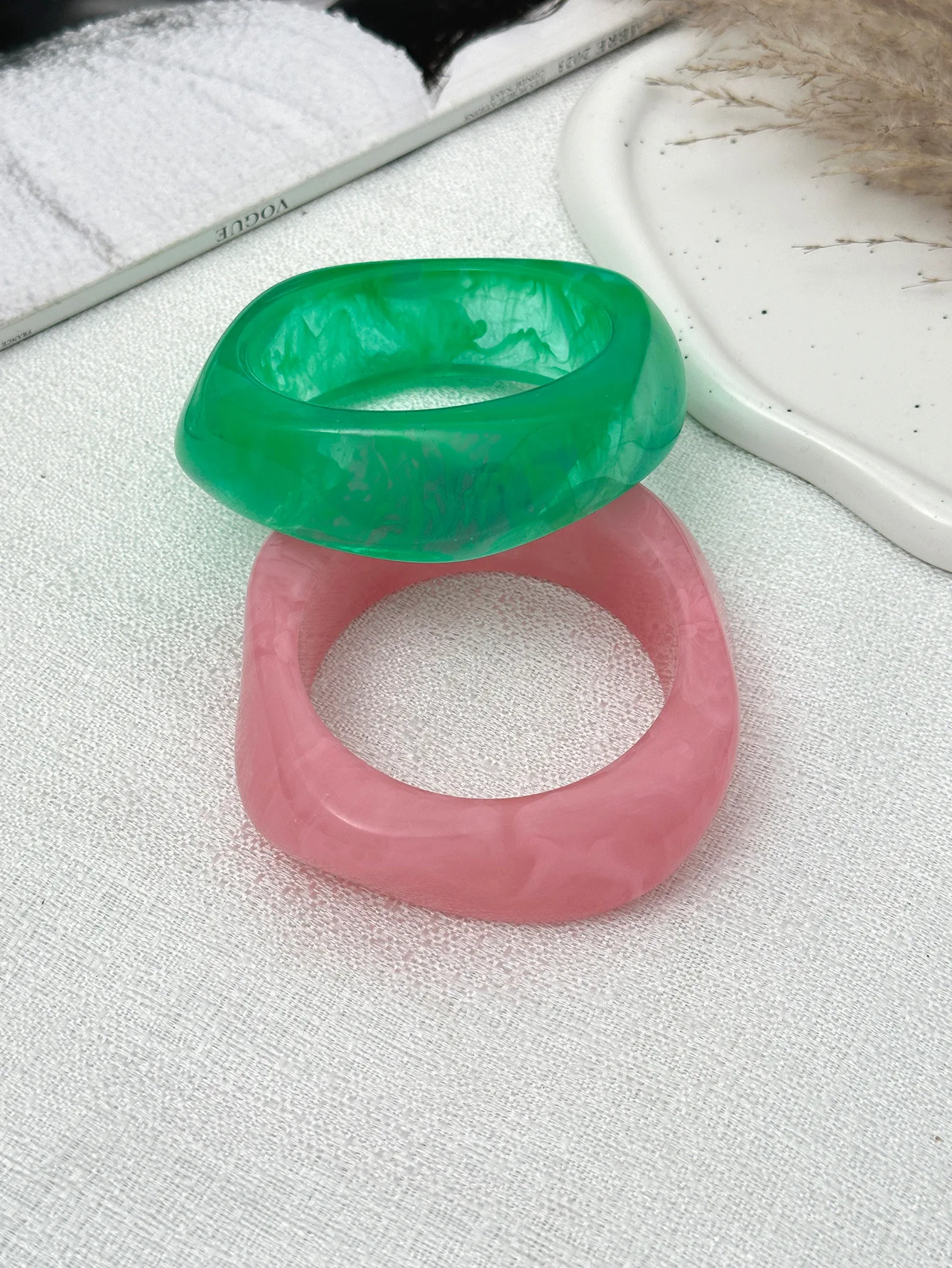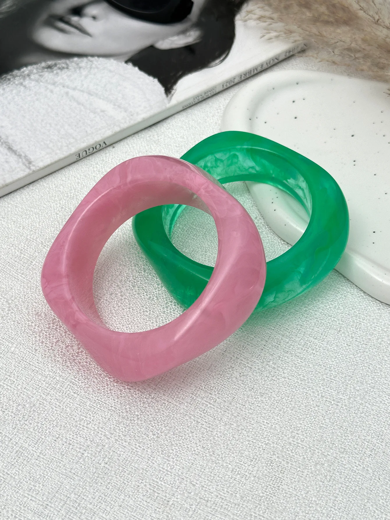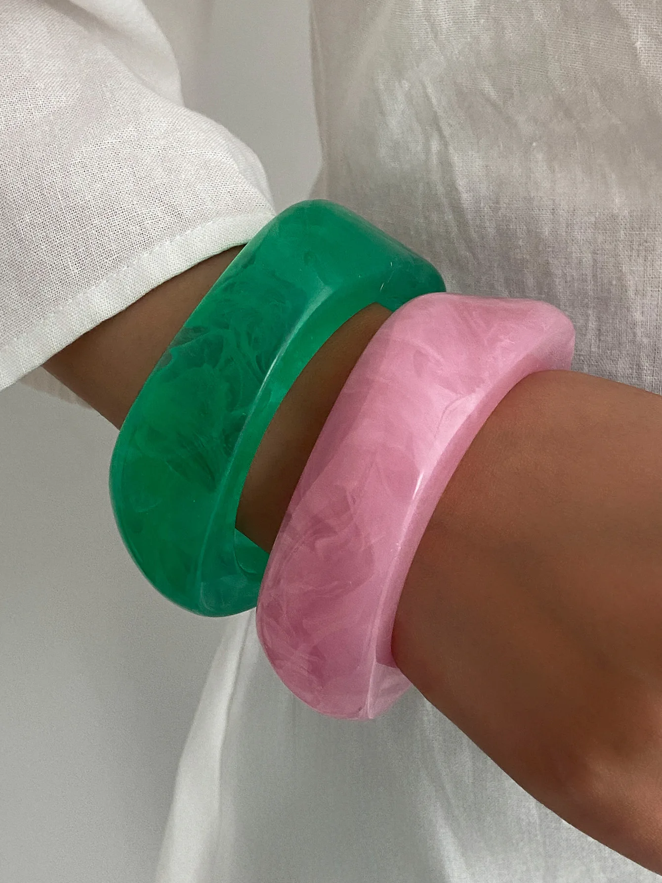 DIEZI Sweet Cool Punk Pink Green Acrylic Resin Wide Bangles Vintage Fashion Gold Color Bracelet Bangle Women Men Girls Jewelry