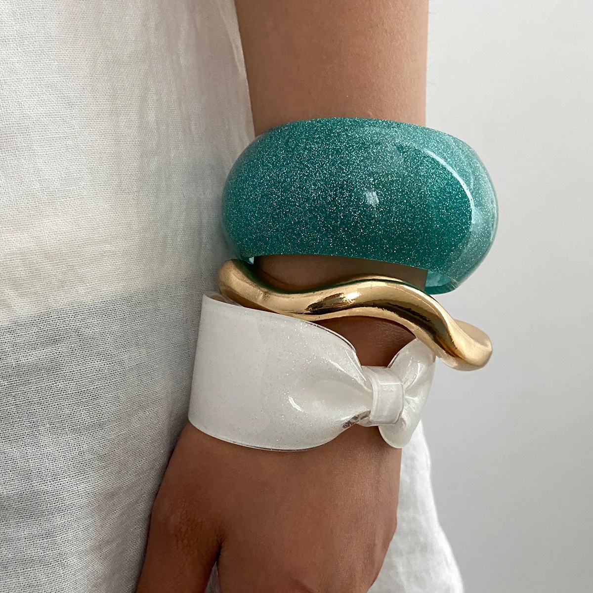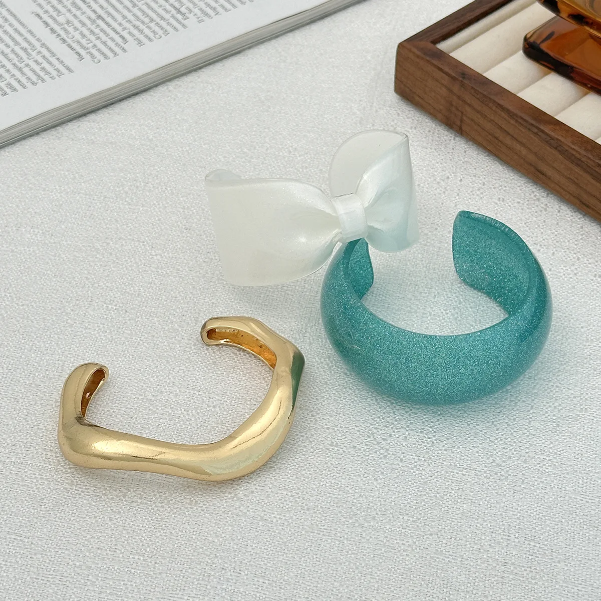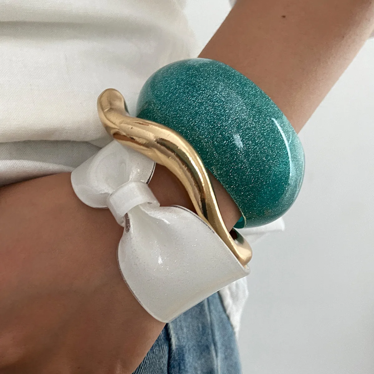 DIEZI Sweet White Bowknot Acrylic Resin Wide Bangles Vintage Fashion Geometric Gold Color Bracelet Bangle For Women Men Jewelry