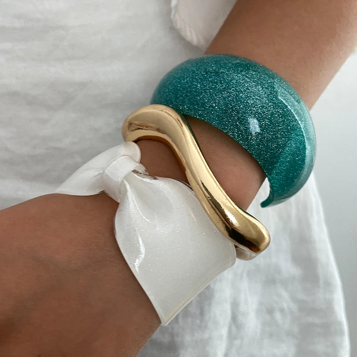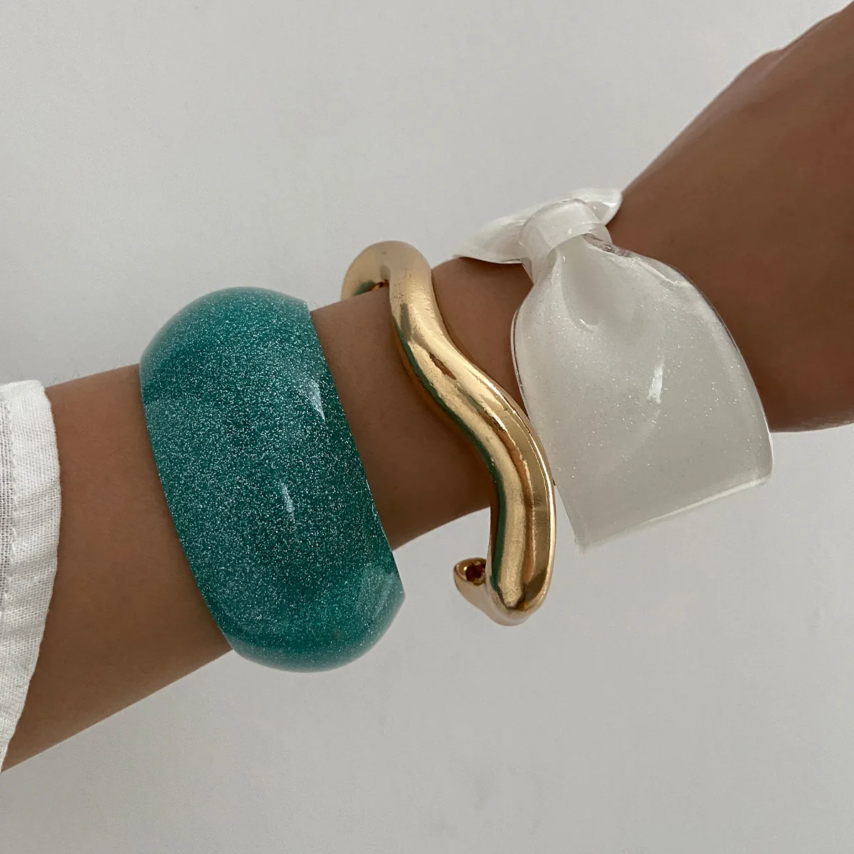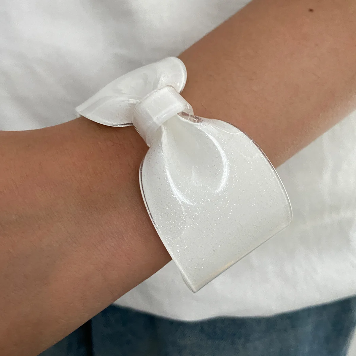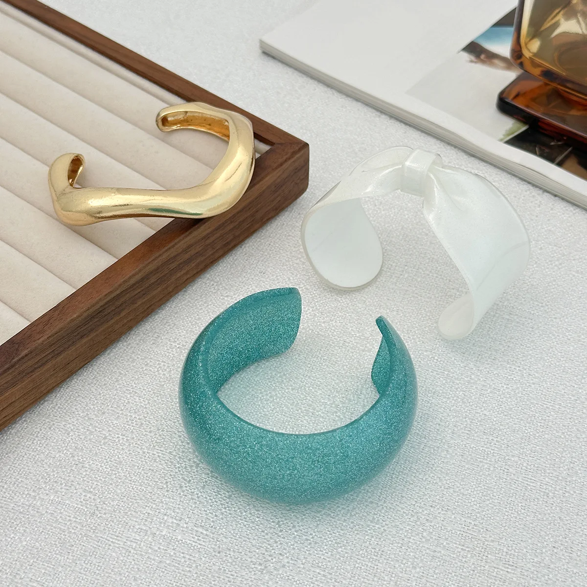 DIEZI Sweet White Bowknot Acrylic Resin Wide Bangles Vintage Fashion Geometric Gold Color Bracelet Bangle For Women Men Jewelry
