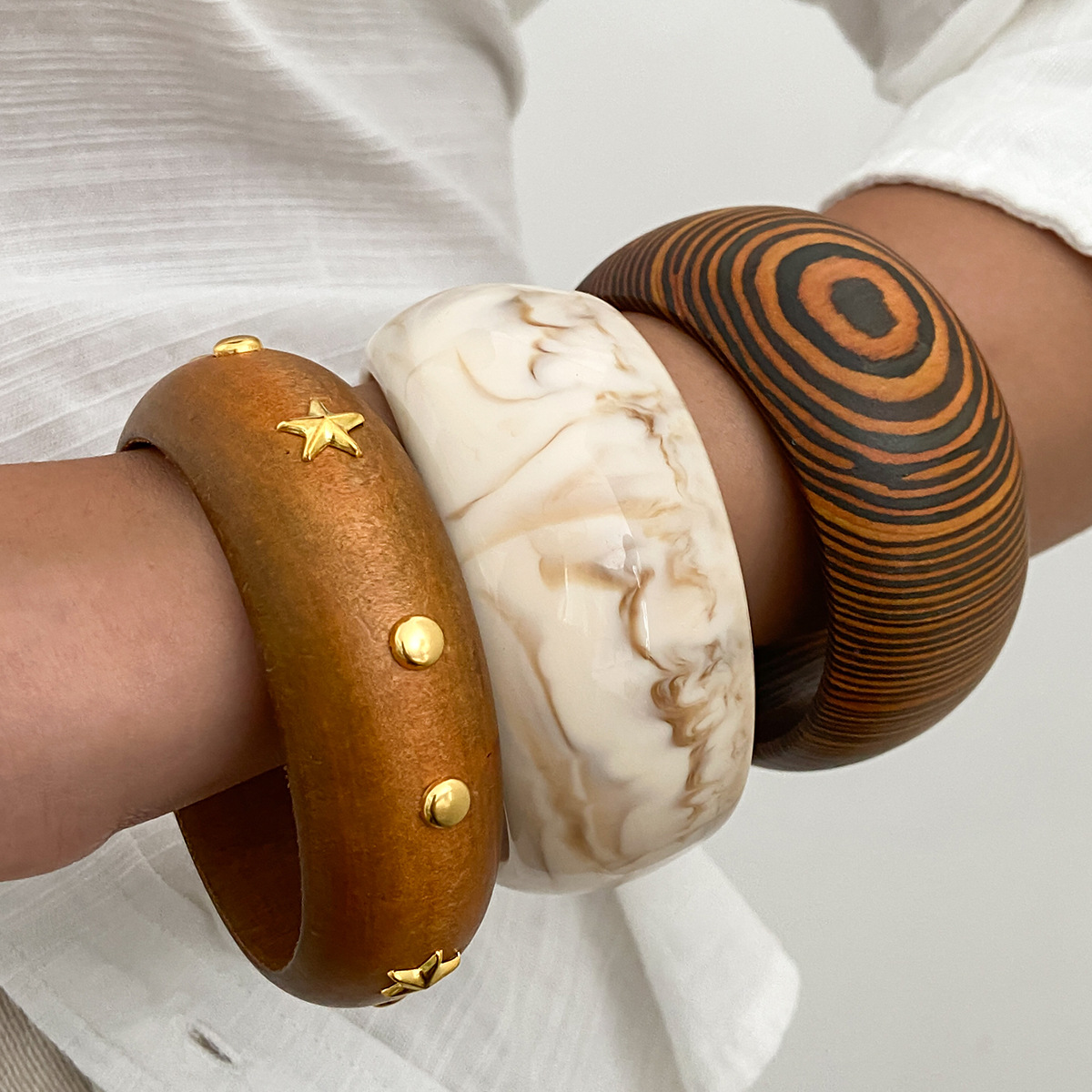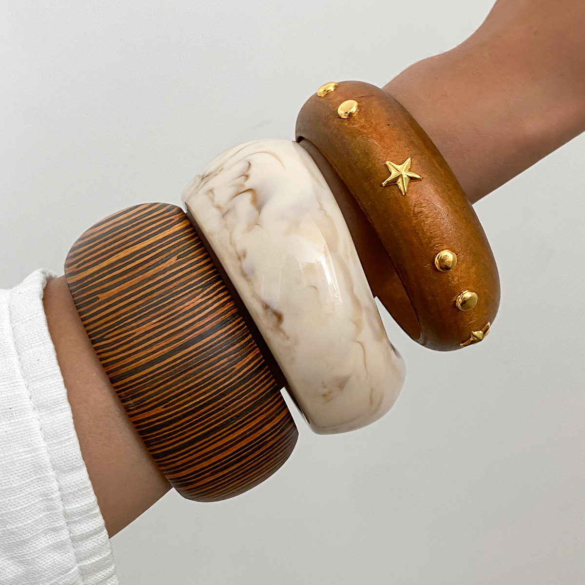 DIEZI Vintage Punk Irregular Brown Wood Bangles Fashion Hip Hop Round Geometric Wide Bangles Bracelet For Women Men Jewelry