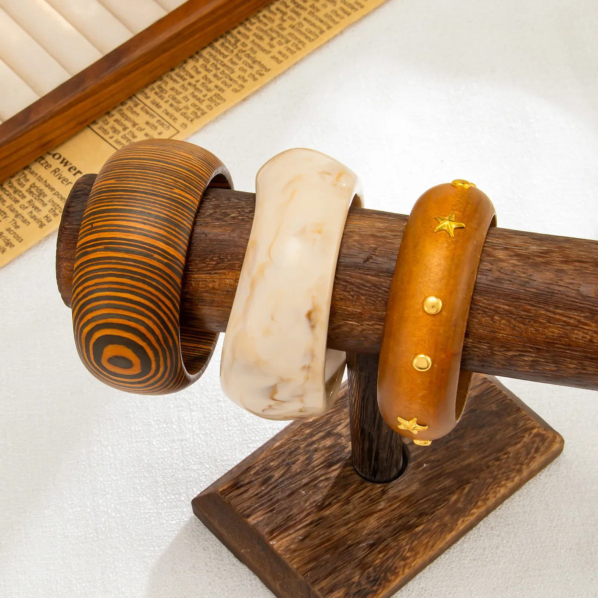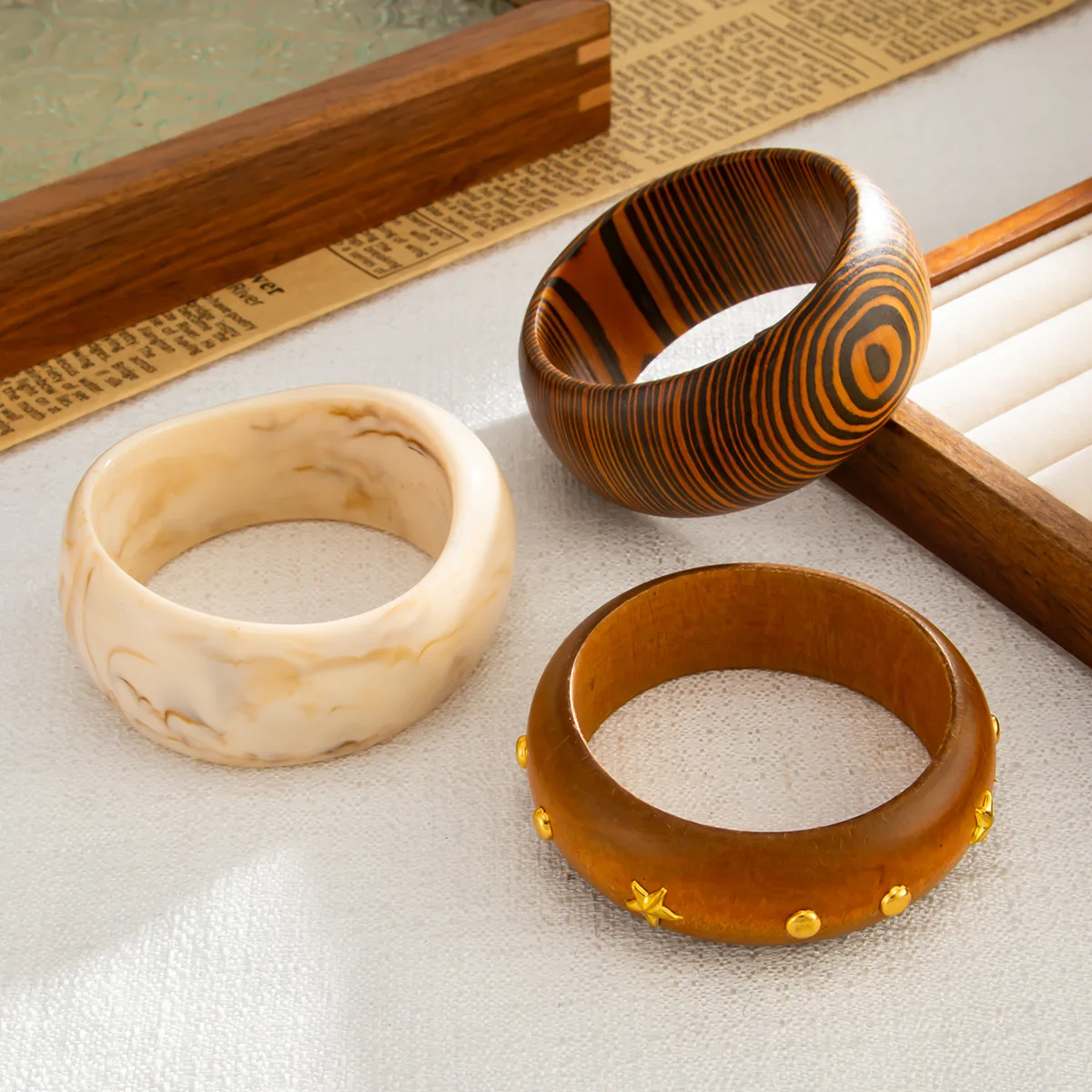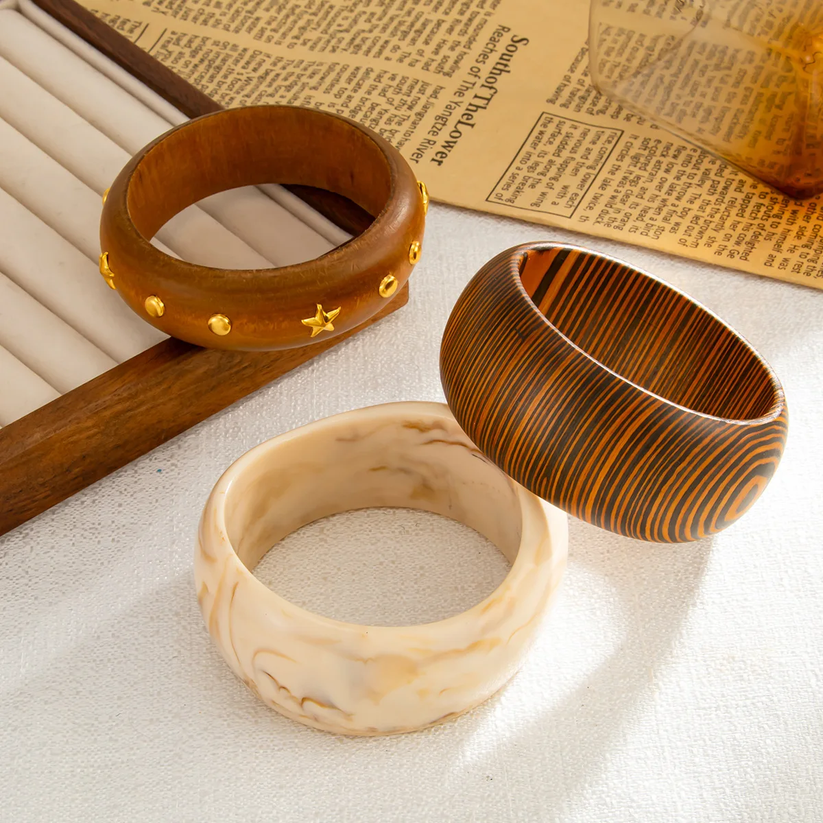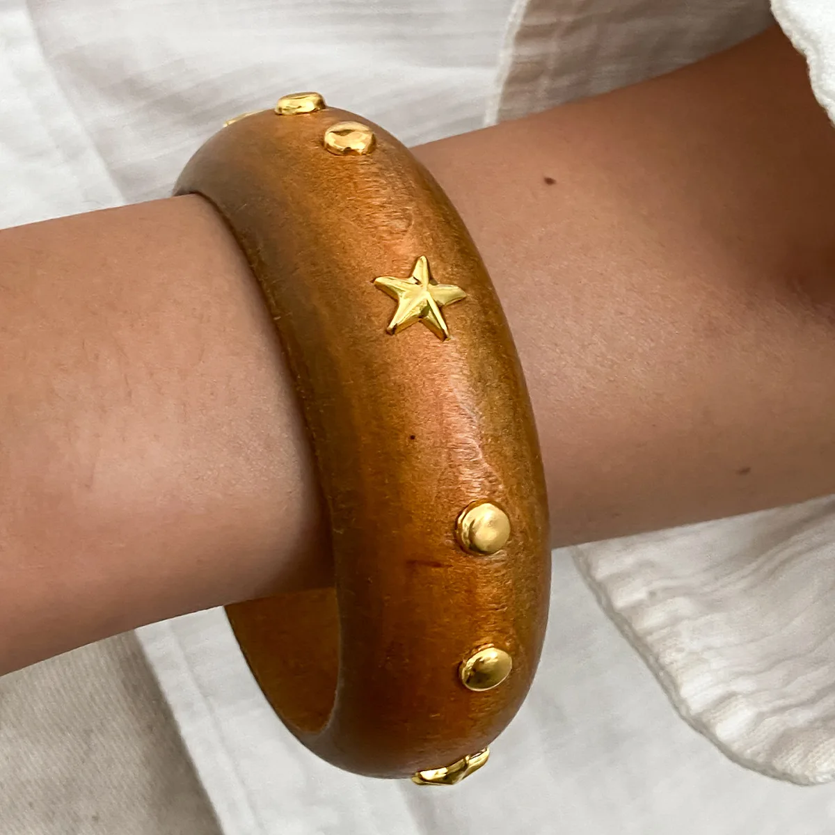 DIEZI Vintage Punk Irregular Brown Wood Bangles Fashion Hip Hop Round Geometric Wide Bangles Bracelet For Women Men Jewelry
