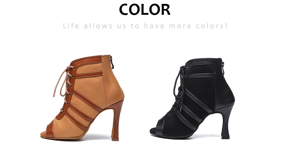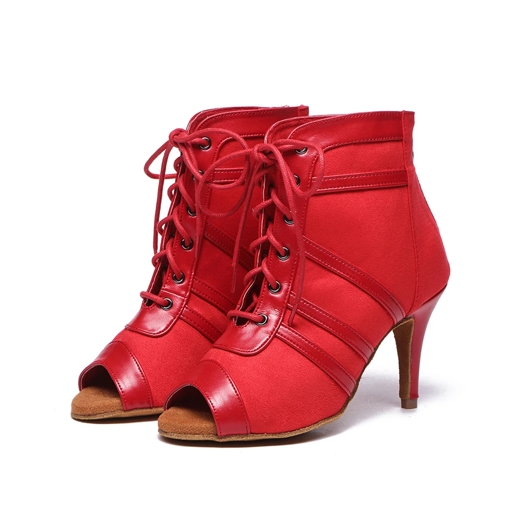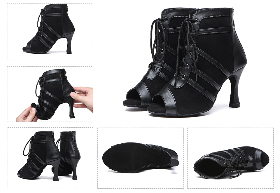 DKZSYIM Black Dance Boots Women Latin Dance Shoes High Heels Ankle Boots Ladies Girls Ballroom Dancing Shoes Spring/Autumn