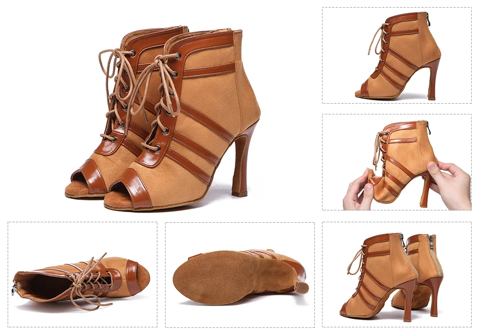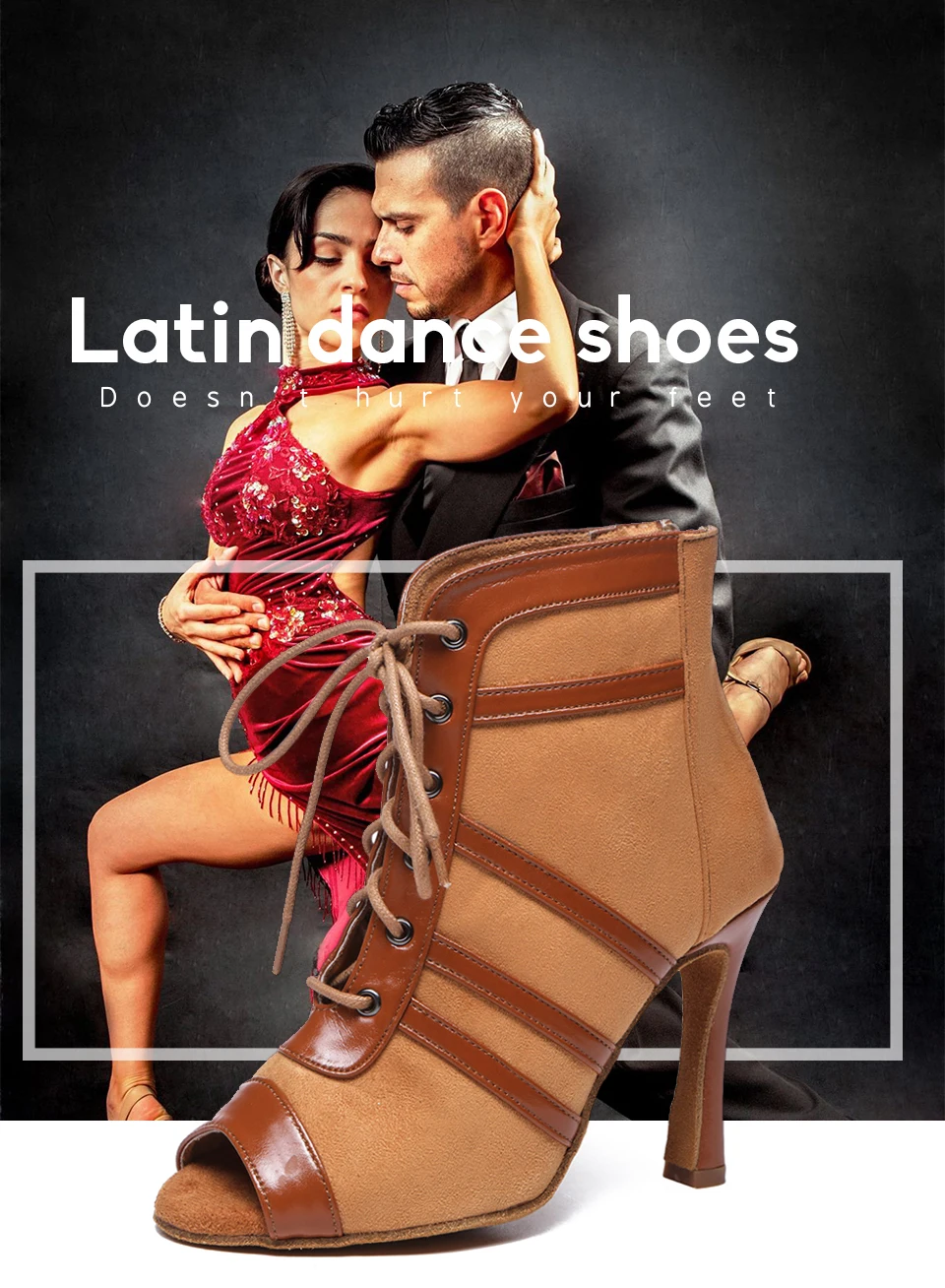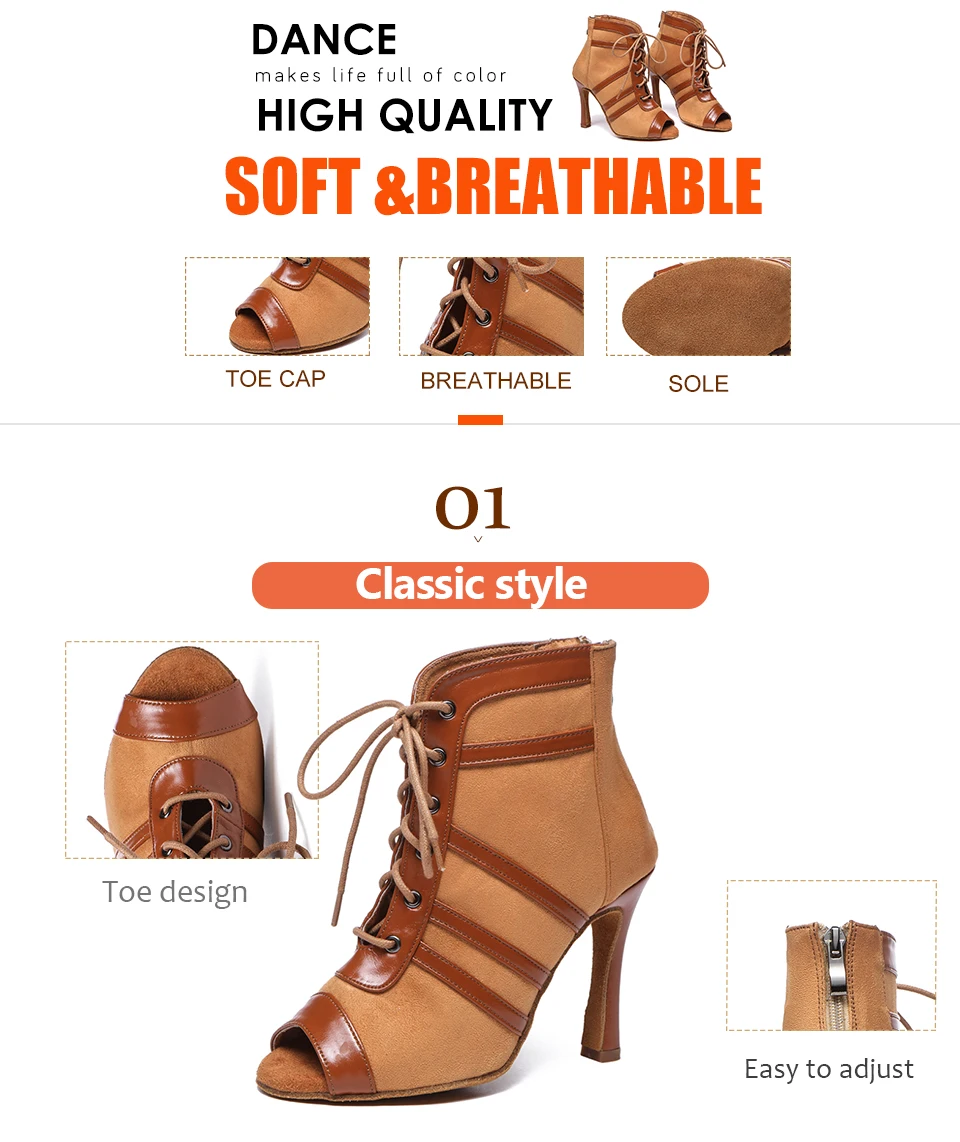 DKZSYIM Dance Boots Women Latin Dance Shoes High Heels Ankle Boots Woman Girls Salsa Tango Dance Shoes Ballroom Ladies Suede sole/Rubber sole can be customized Heel:7.5/8.5/9/10CM