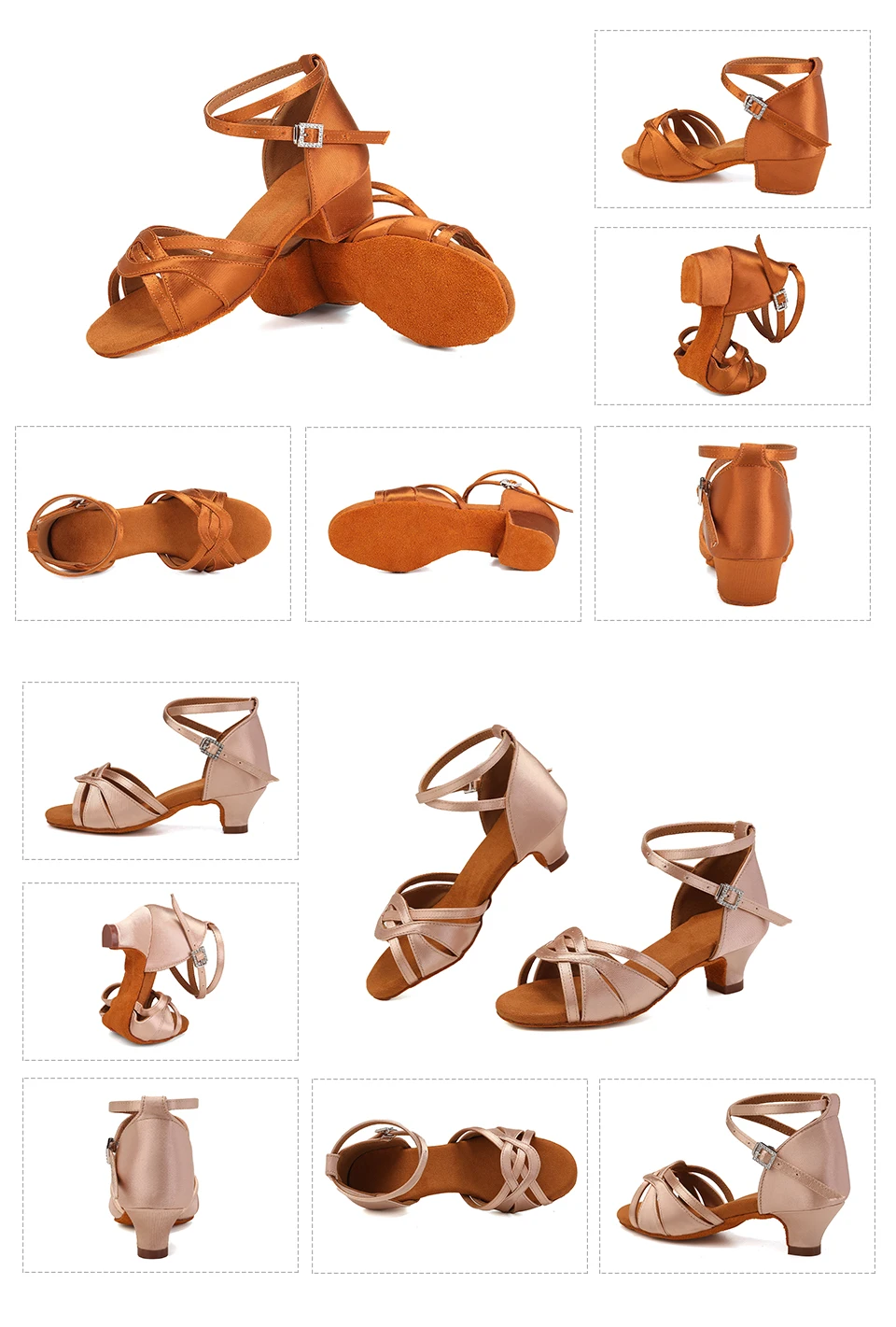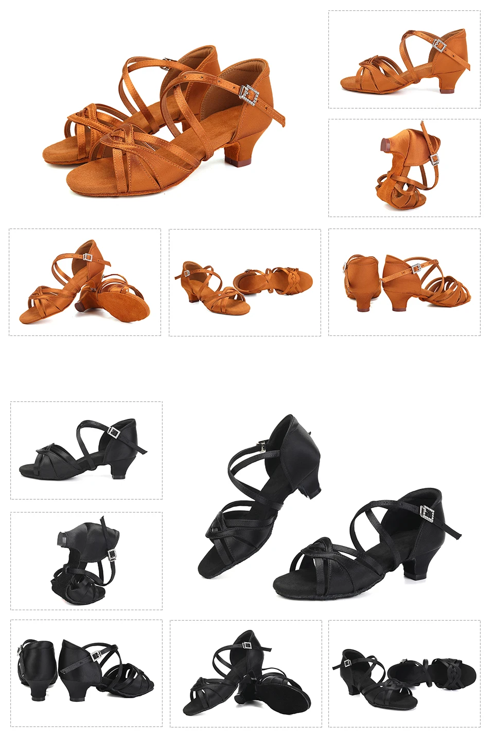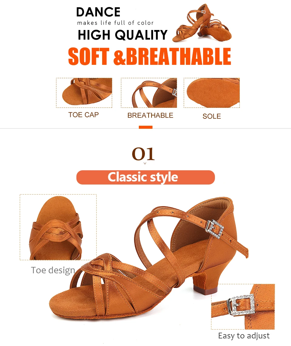 DKZSYIM Girls Latin Dance Shoes Silk Tango Dance Shoes Salsa Dancing Shoes for Kids Dance Sandals Ballroom Women Heel 3/4CM