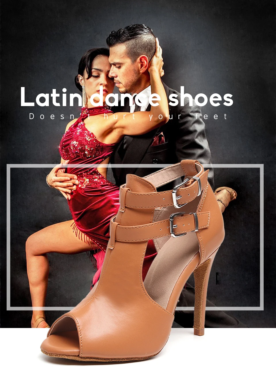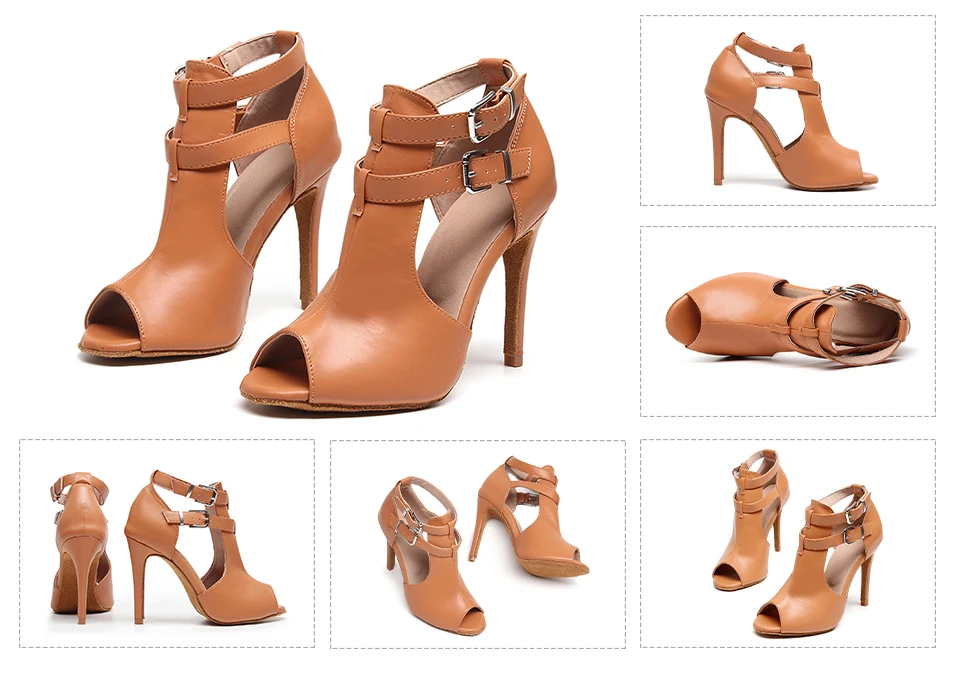 DKZSYIM New Sexy Stilettos Woman Dance Shoes leather Peep-toe Dance Boots soft sole Boots Women Party Ballroom Dancing Shoes