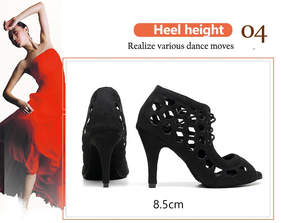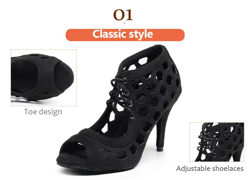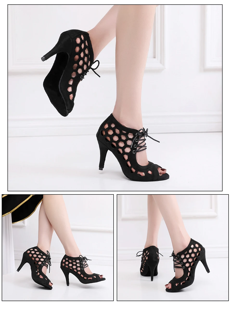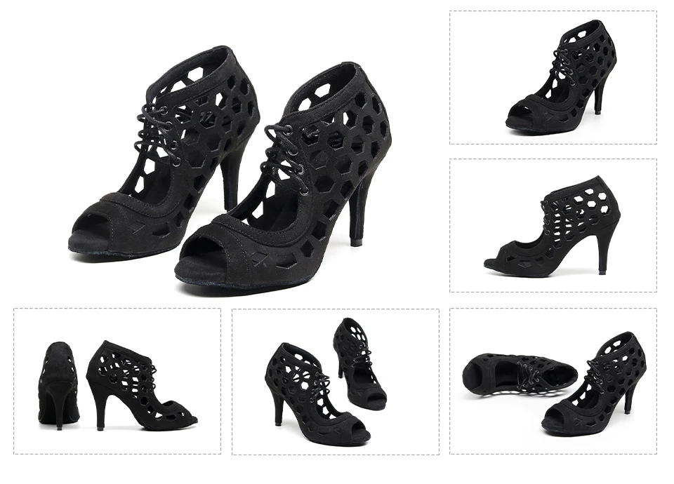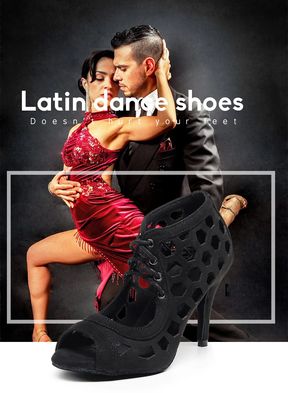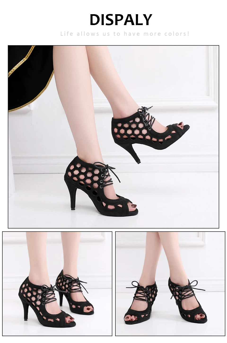 DKZSYIM New Women Black Latin Dance Shoes Peep-toe Ankle Boots Ladies Tango Ballroom Dancing Shoes Girls Sexy Dance Boots