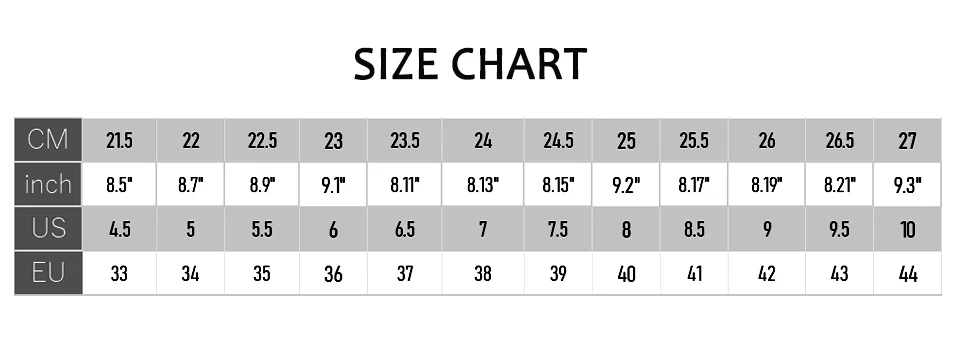 Size:please choose size according to your feet length.If your feet are a little fat and wide,please choose larger size.If you can’t make sure the size,please free to contact us.