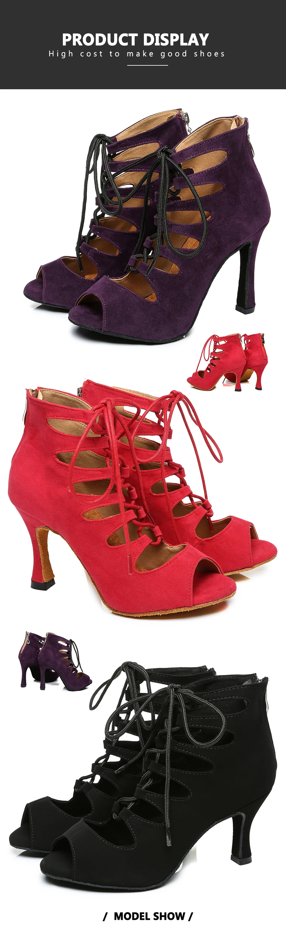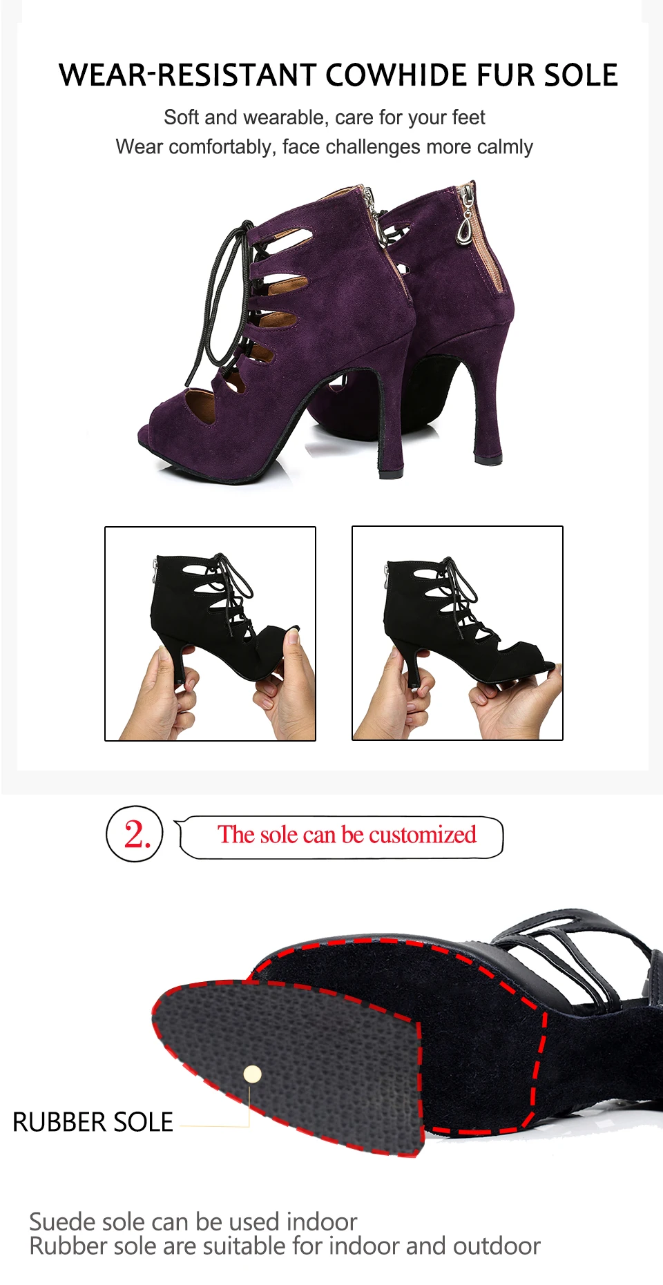 DKZSYIM Purple/Black Latin Dance Shoes Women Ballroom Tango/Salsa Dancing Boots Open-Toe High Top Dance Shoes High Heels 6-10CM