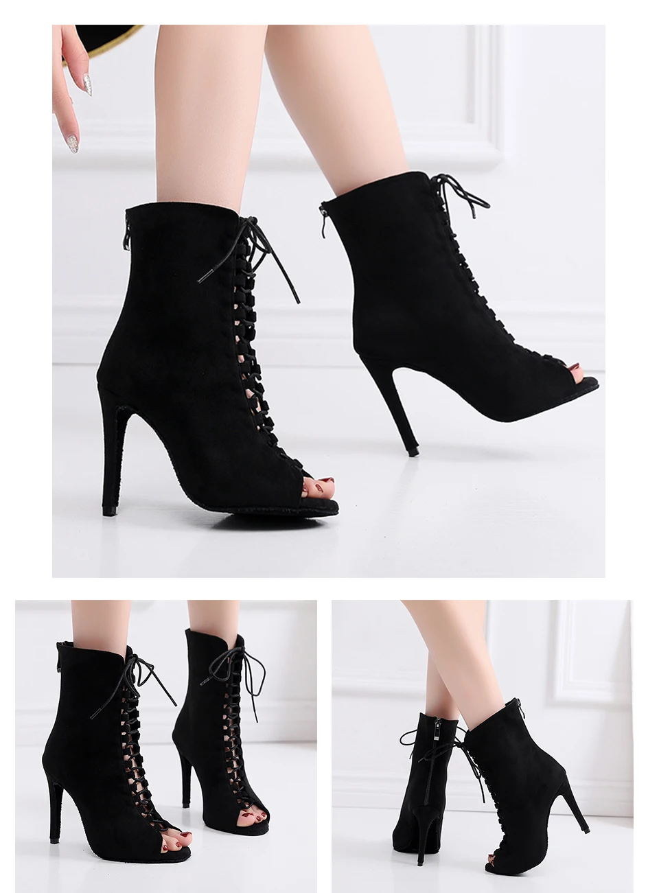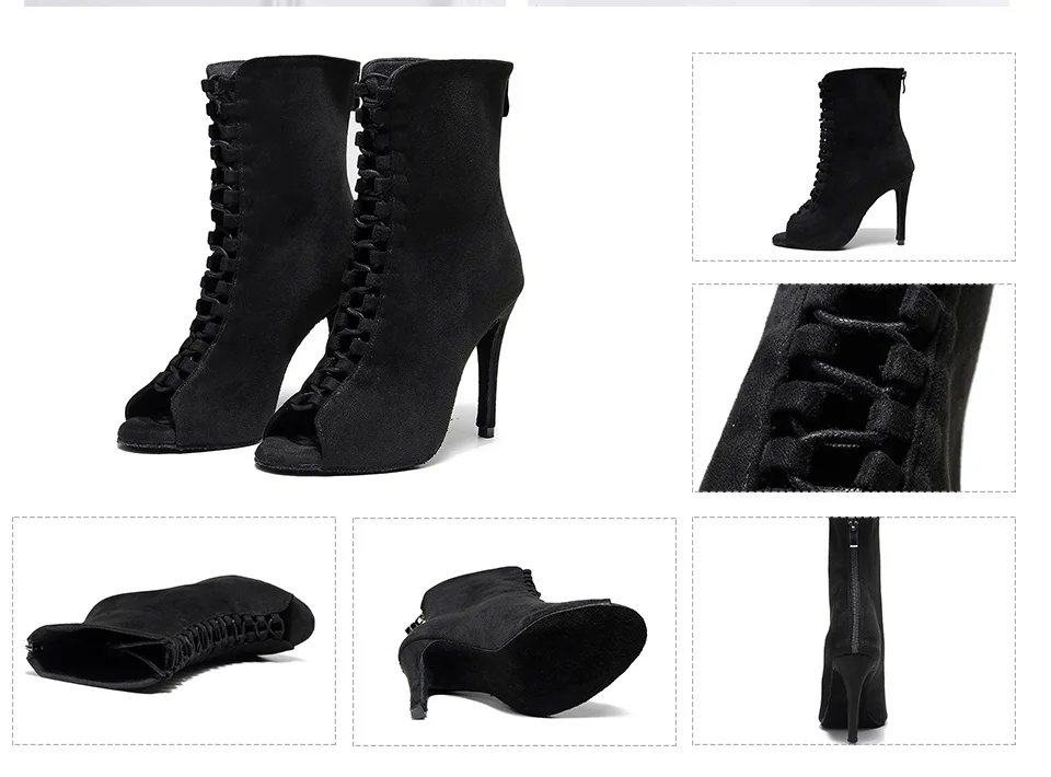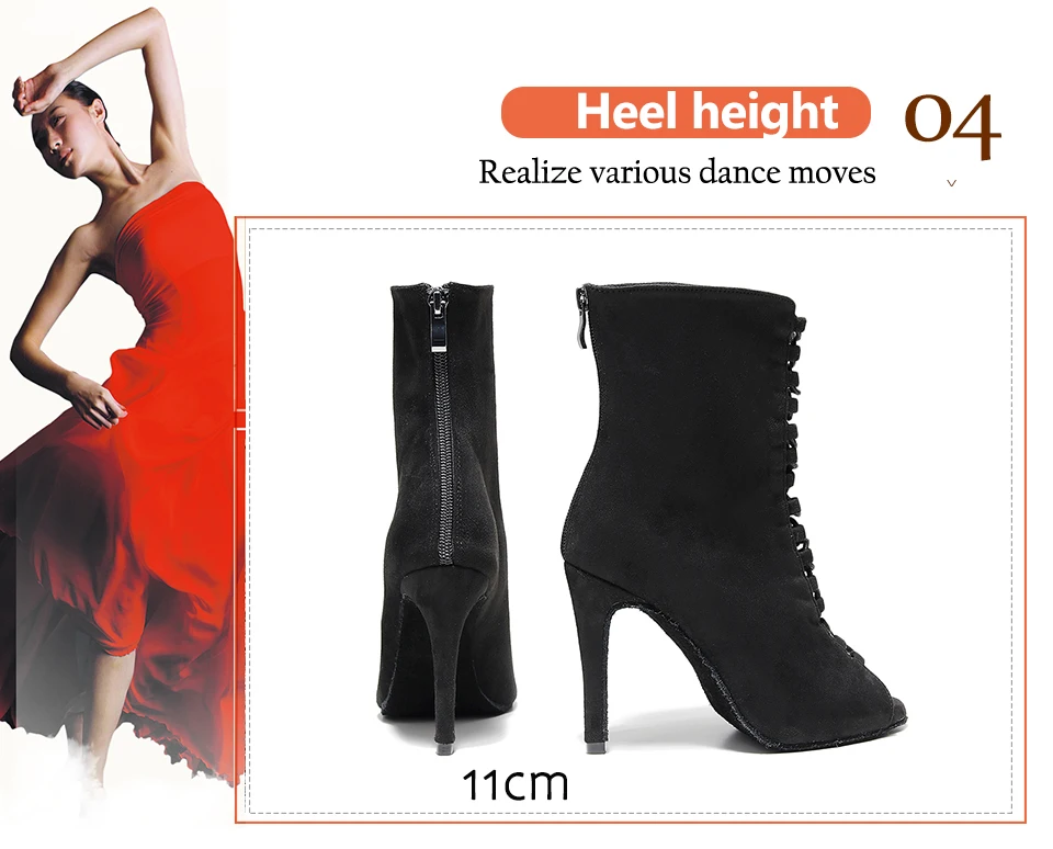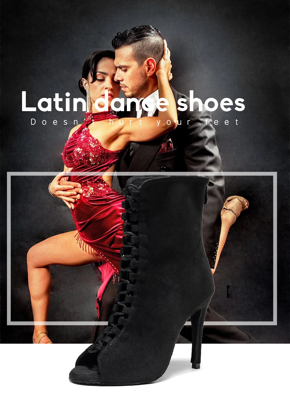 DKZSYIM Spring Autumn High Top Dance Shoes Women Black Sexy Latin Tango Dance Boots For Ladies Girls Party Ballroom dance heels
