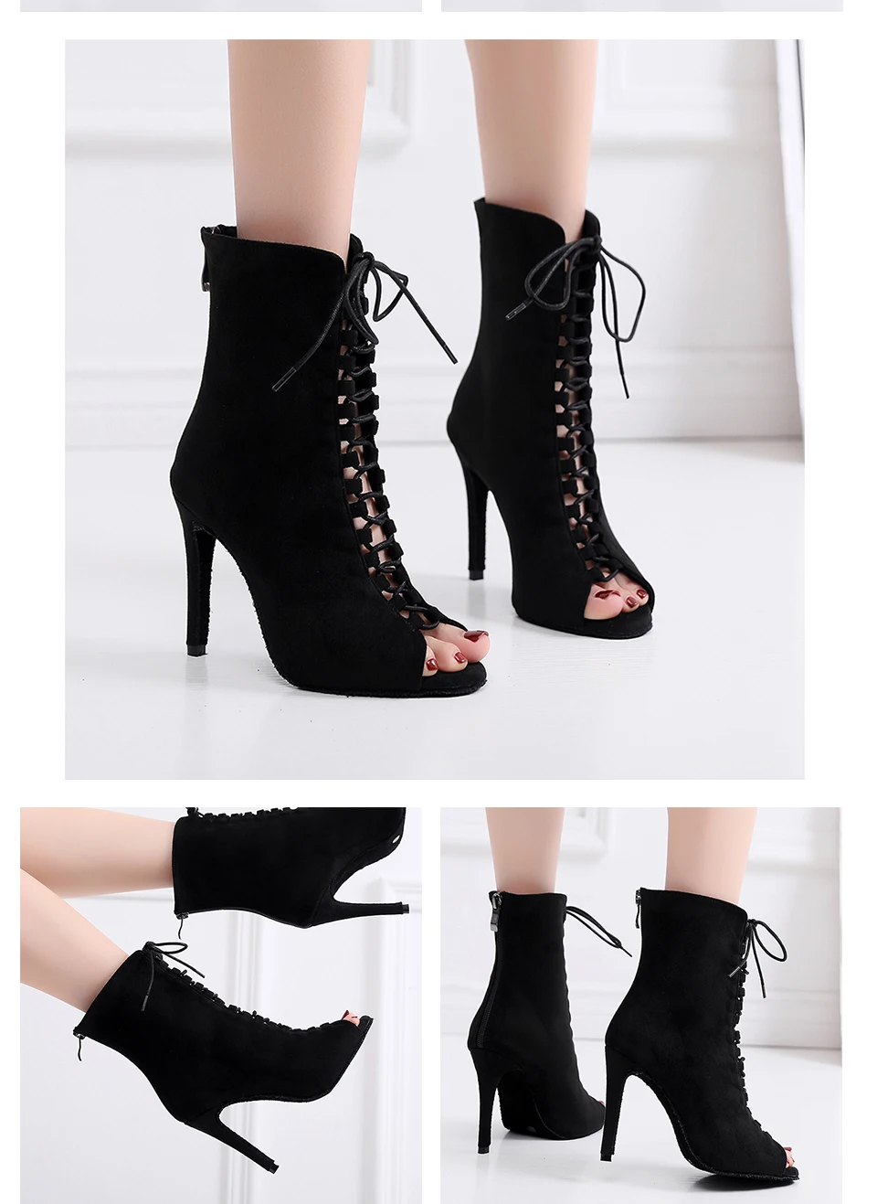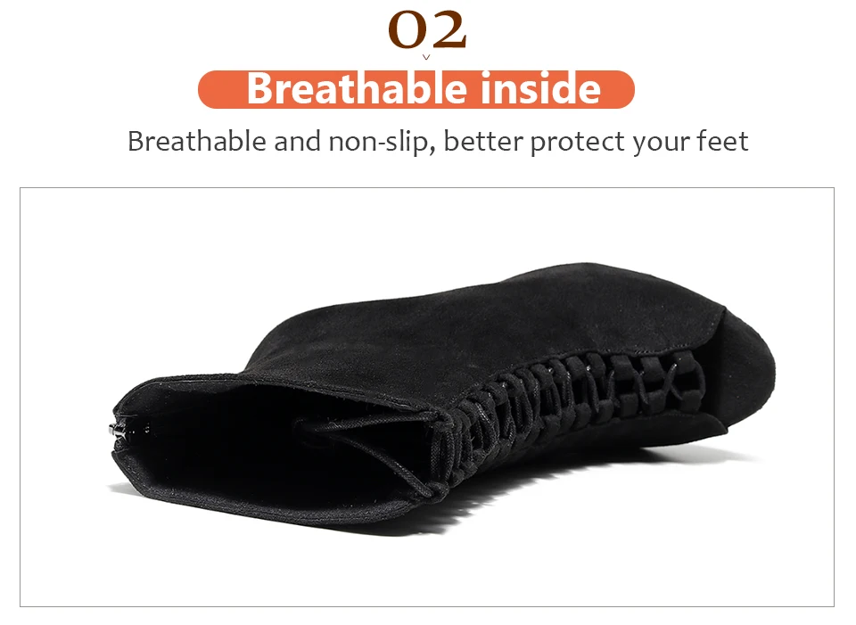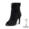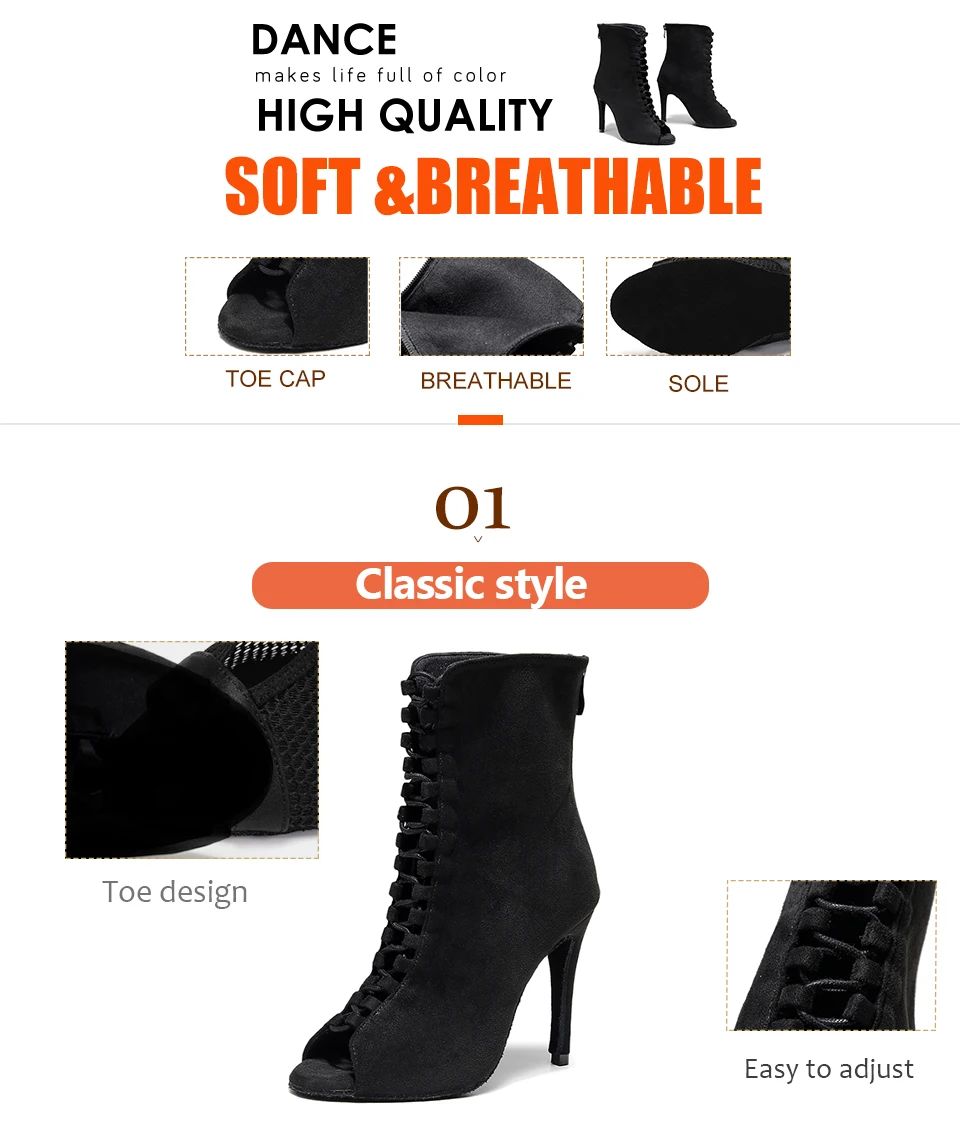 DKZSYIM Spring Autumn High Top Dance Shoes Women Black Sexy Latin Tango Dance Boots For Ladies Girls Party Ballroom dance heels