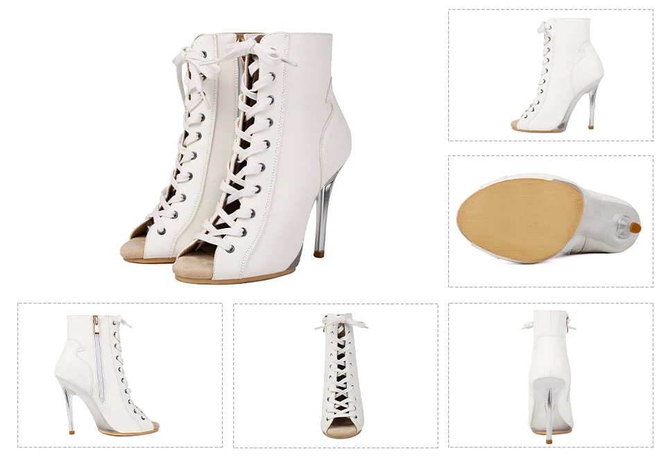 DKZSYIM Woman Dance Boots Crystal heels Stilettos Girls Sexy Dance Booties Women lace-up Stilettos Dance Boots Ladies New