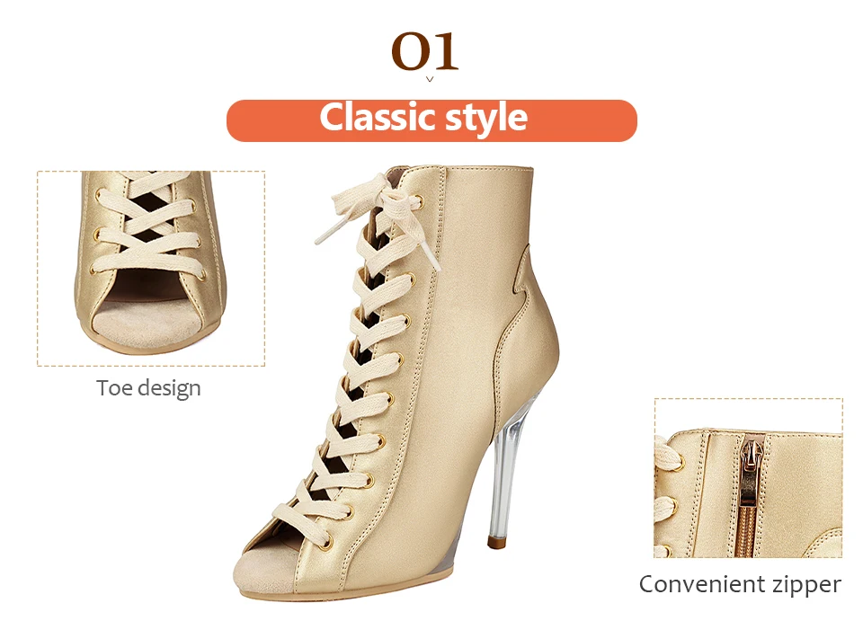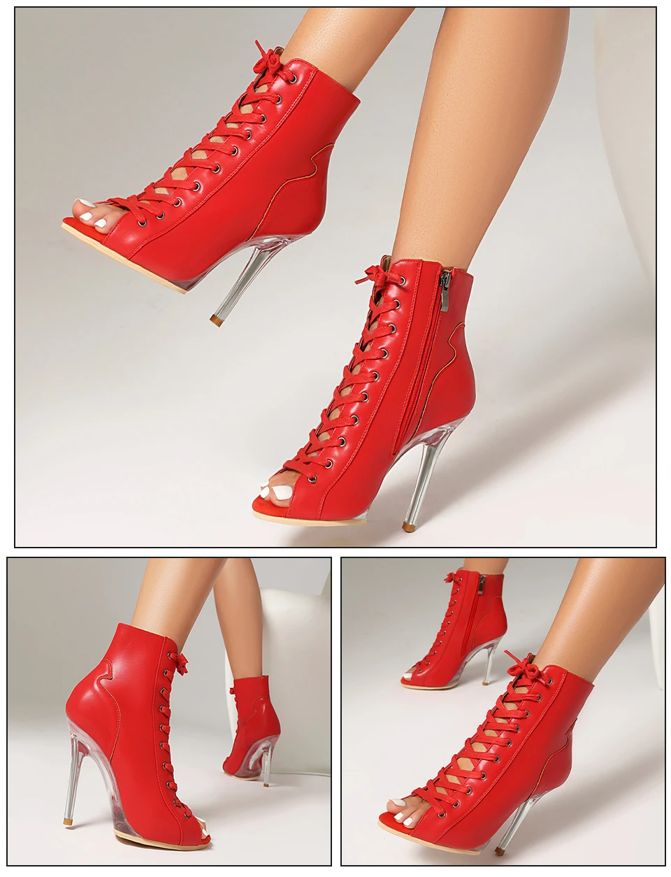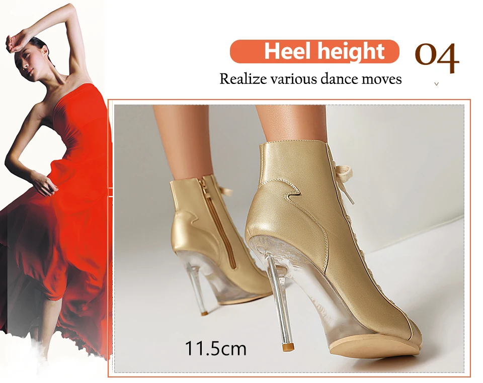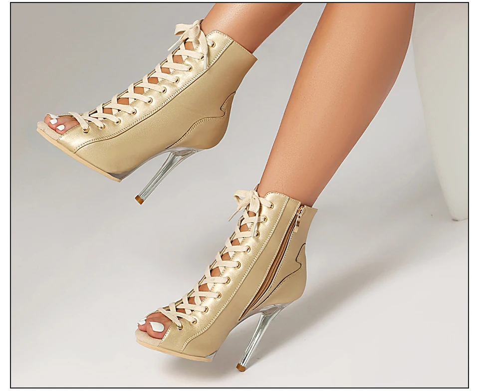 DKZSYIM Woman Dance Boots Crystal heels Stilettos Girls Sexy Dance Booties Women lace-up Stilettos Dance Boots Ladies New