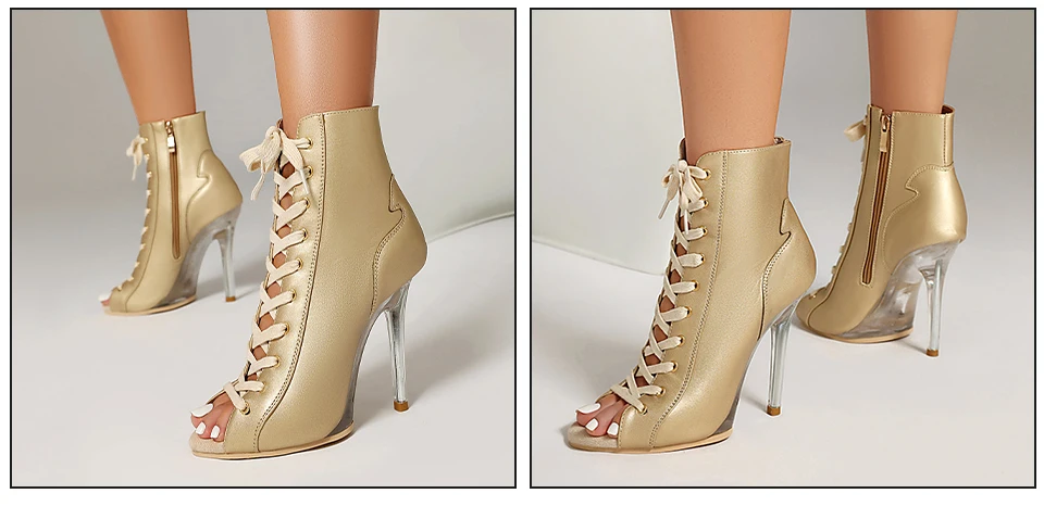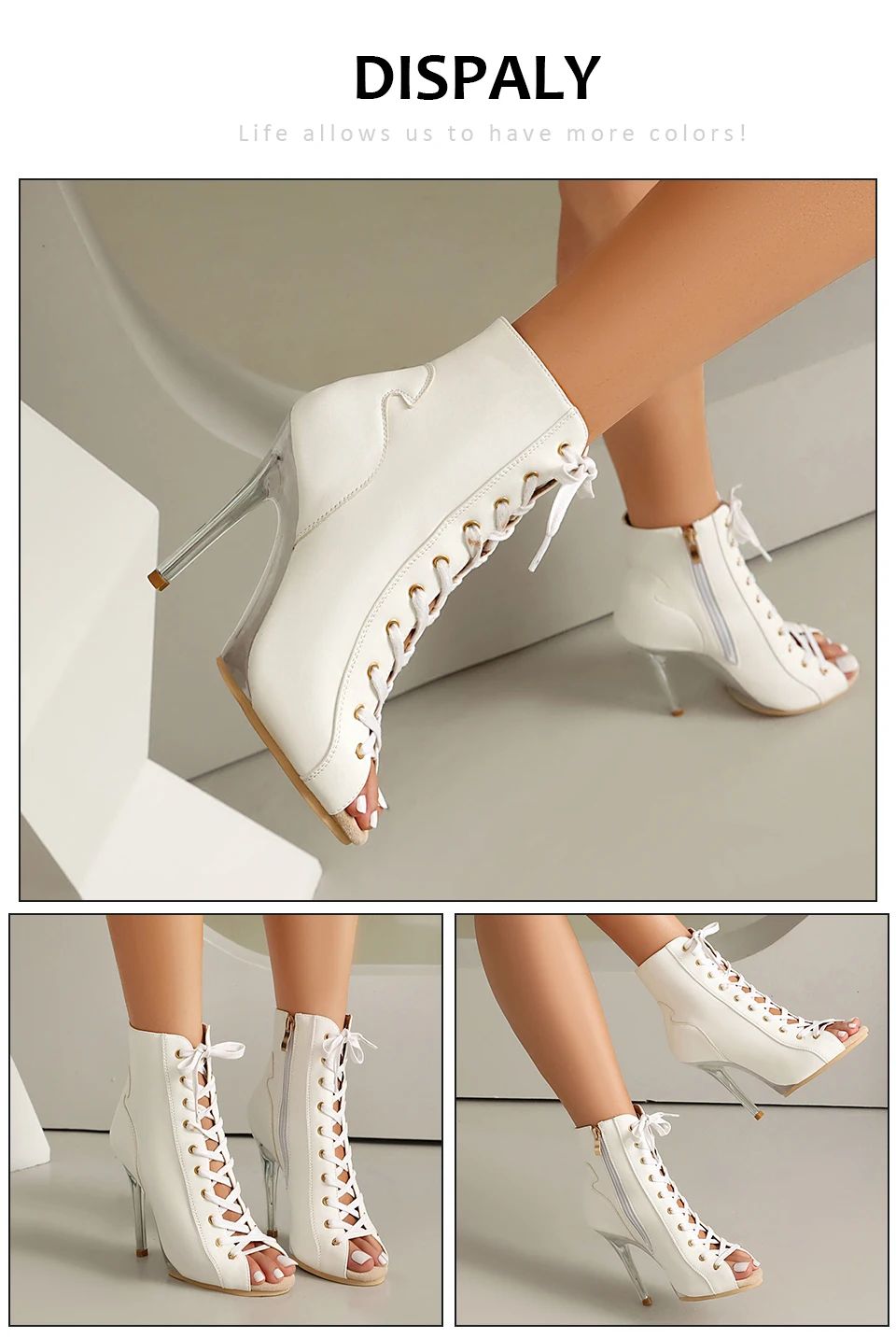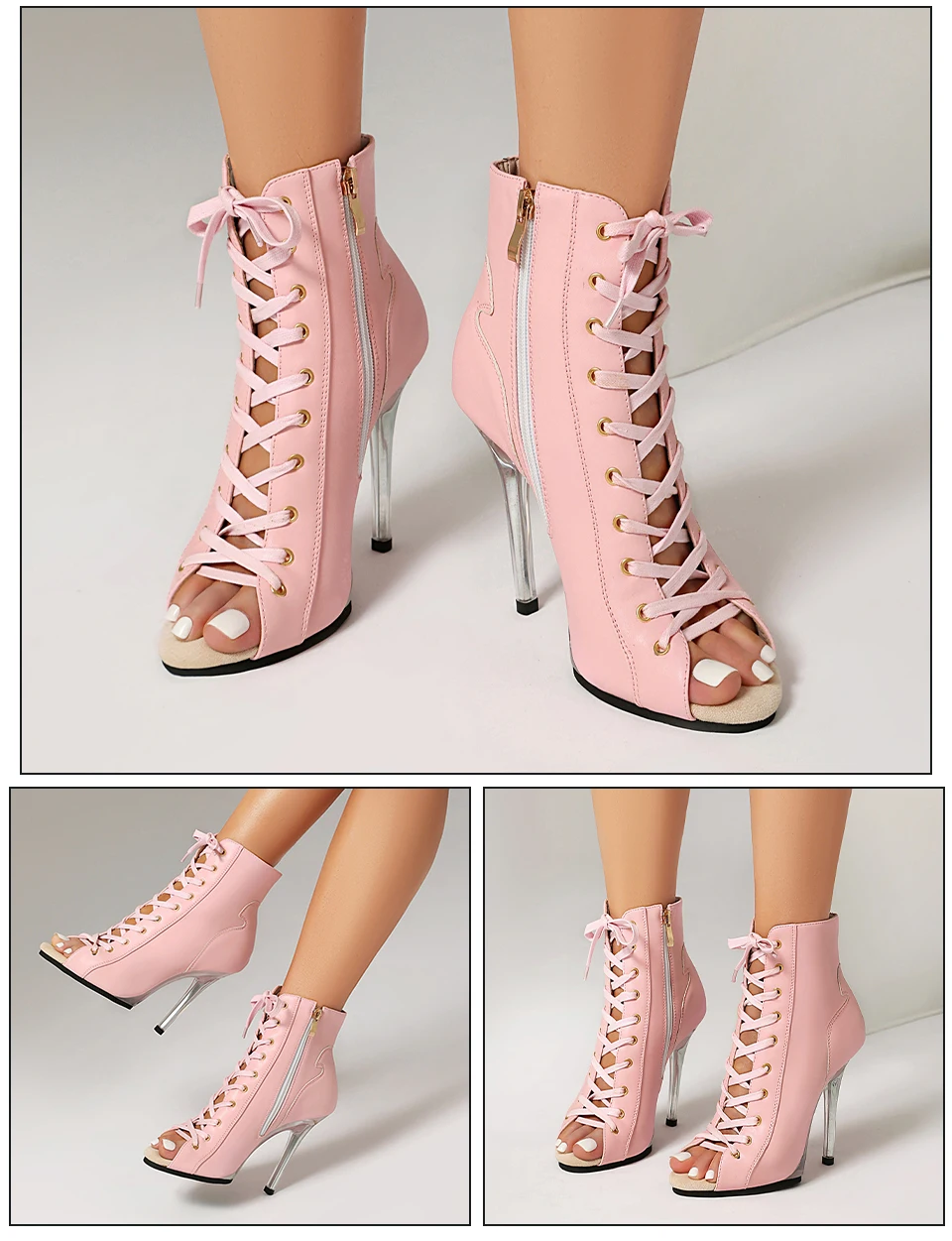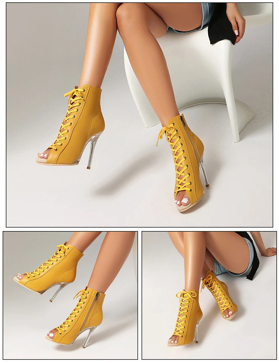 DKZSYIM Woman Dance Boots Crystal heels Stilettos Girls Sexy Dance Booties Women lace-up Stilettos Dance Boots Ladies New