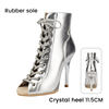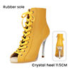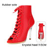 DKZSYIM Woman Dance Boots Crystal heels Stilettos Girls Sexy Dance Booties Women lace-up Stilettos Dance Boots Ladies New High Heels Microfiber leather Rubber sole Heel 11.5CM