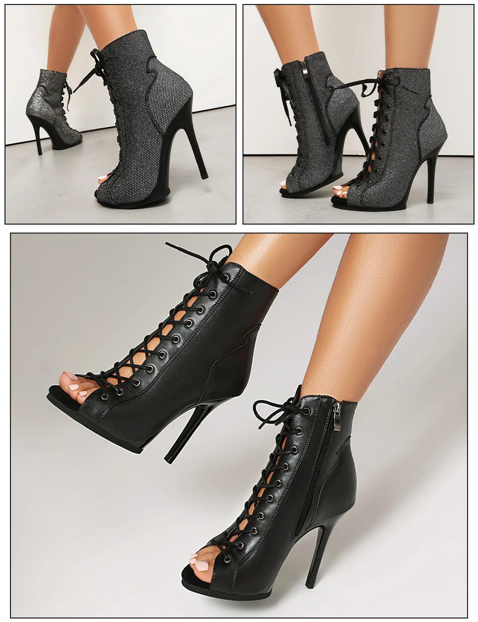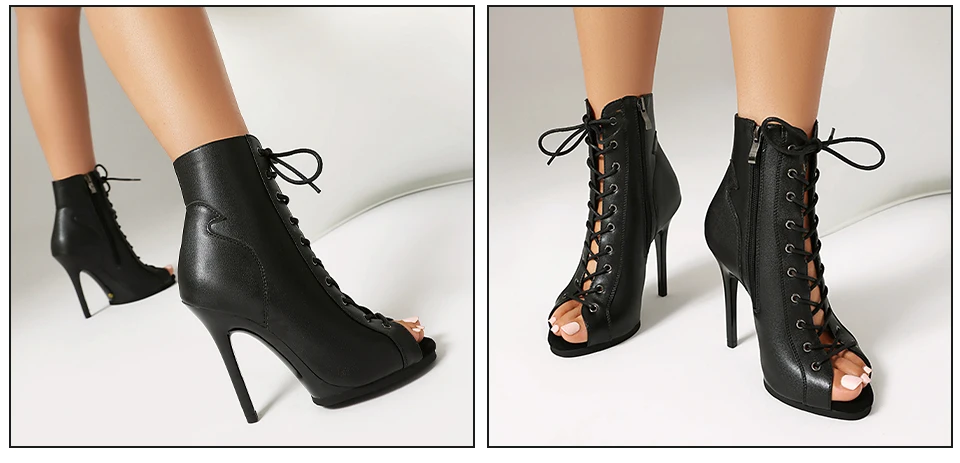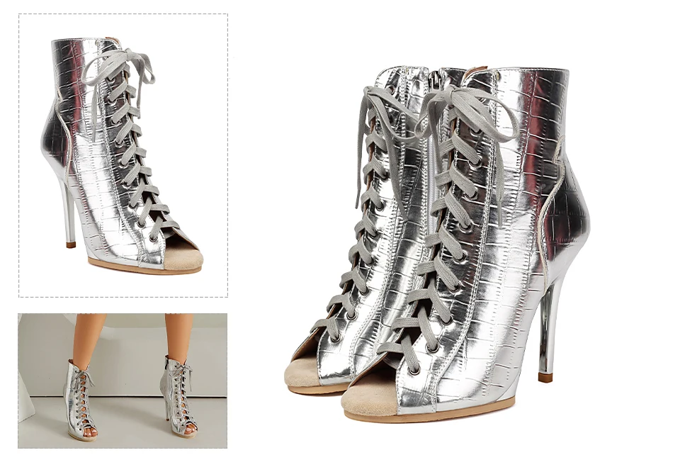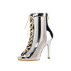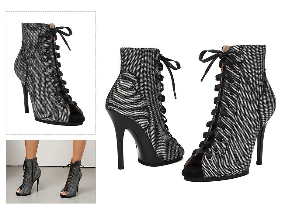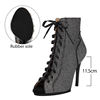 DKZSYIM Woman Dance Shoes lace-up Mesh Dance Shoes Sexy Stilettos for Ladies Girls Black Dance Booties Women Dancing Shoes