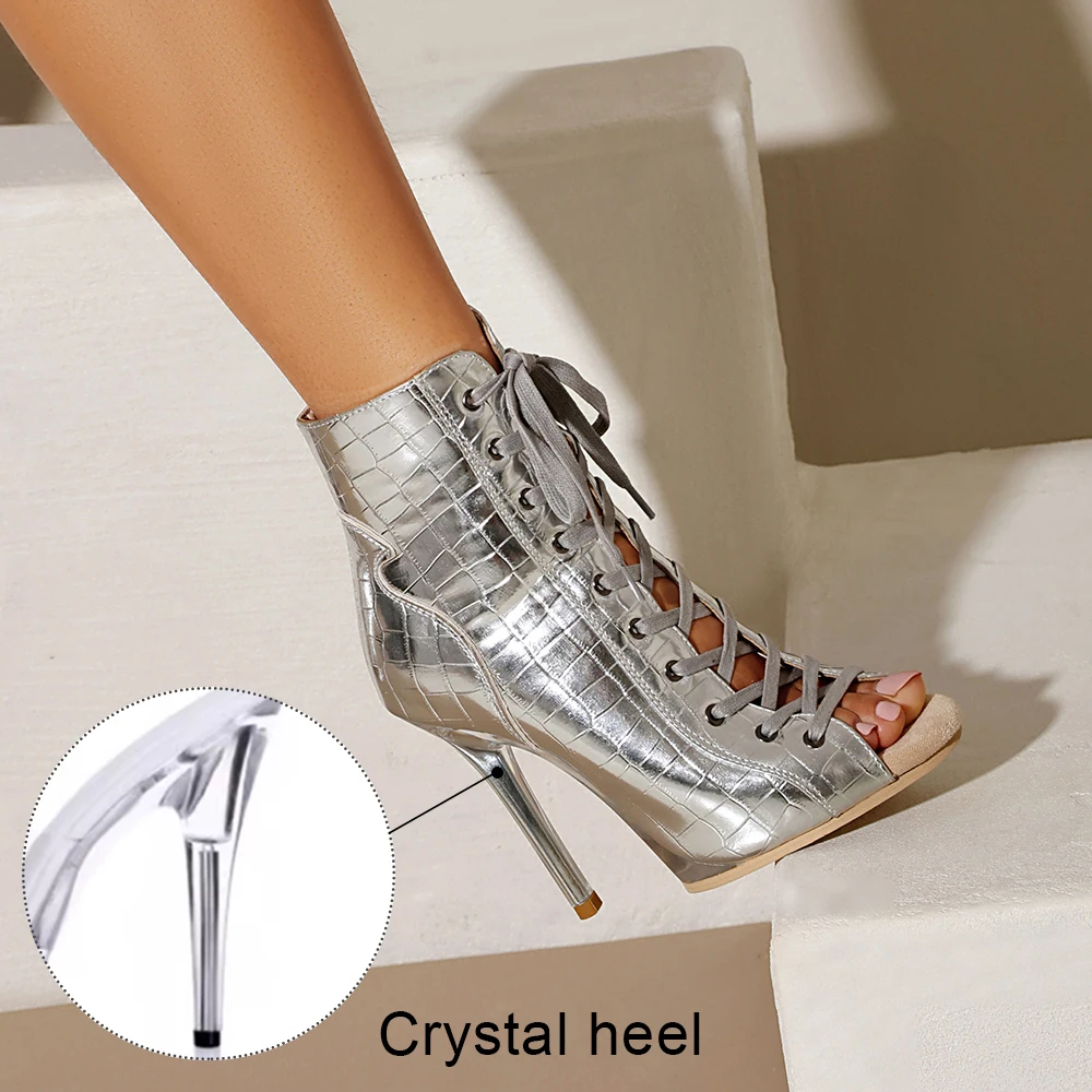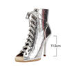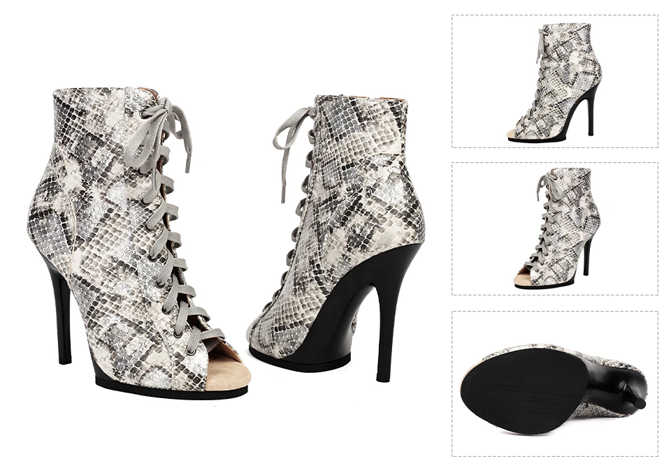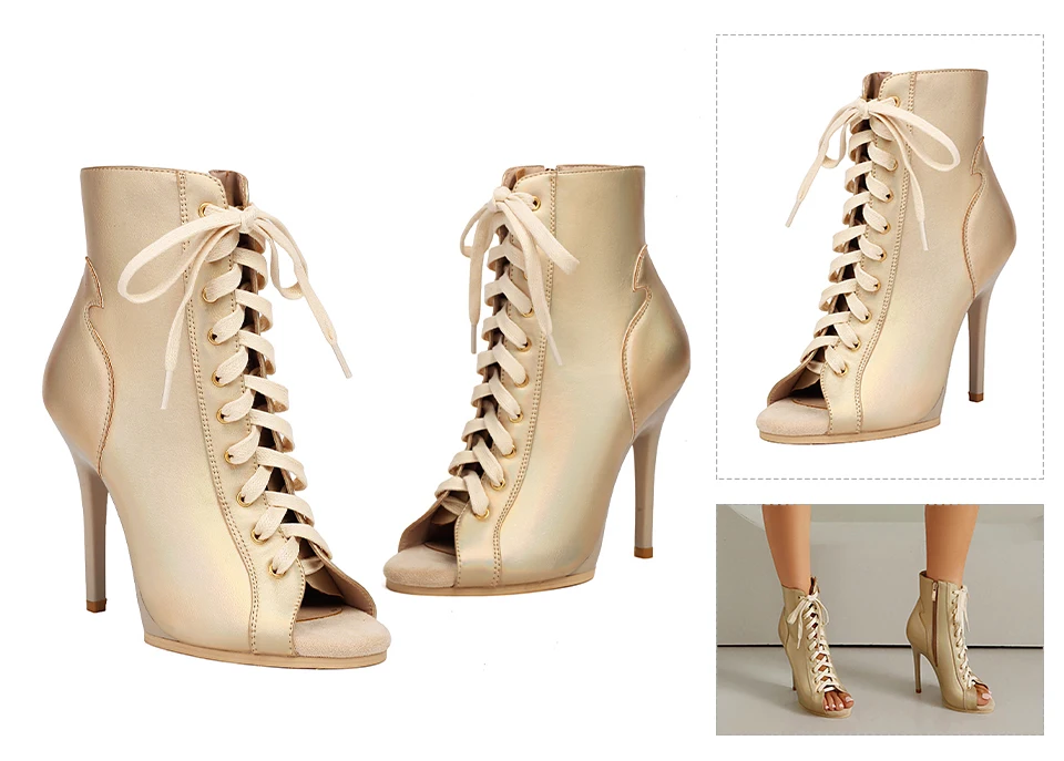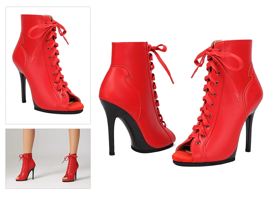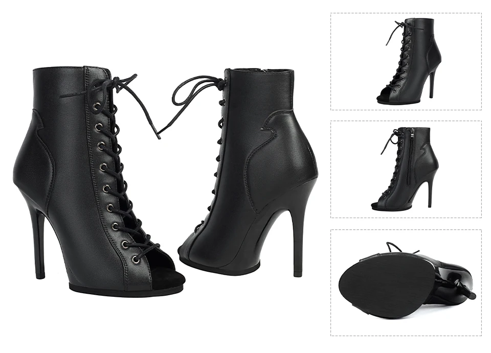 DKZSYIM Woman Dance Shoes lace-up Dance Booties for Ladies Dance Heels Ballroom Shoes Girls Women Sexy Stiletto High Heels Microfiber leather+mesh Rubber sole Heel 11.5CM