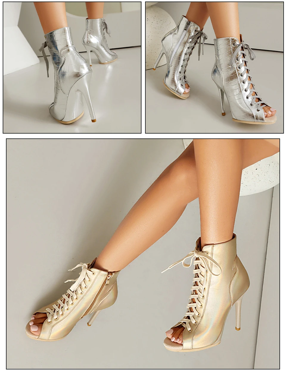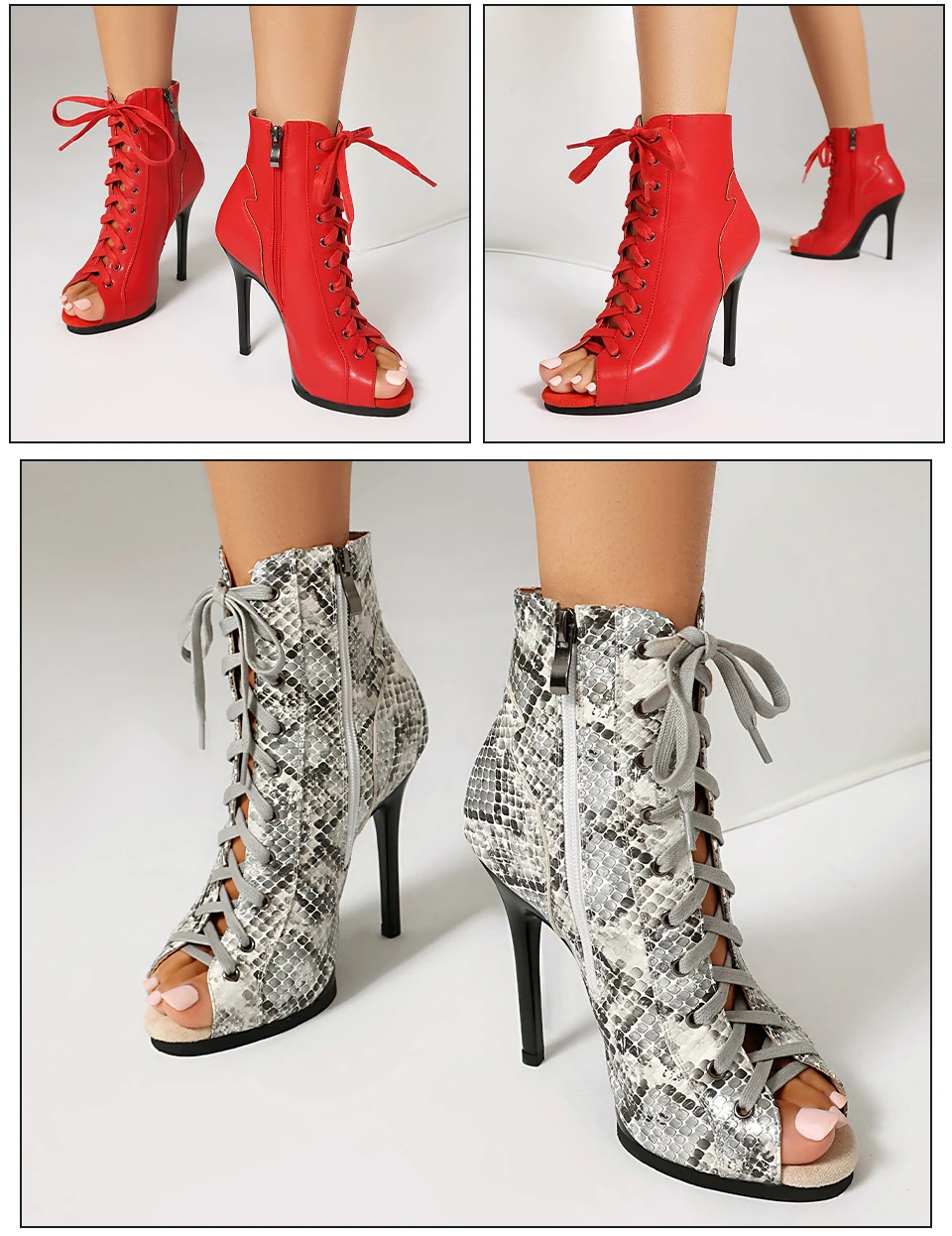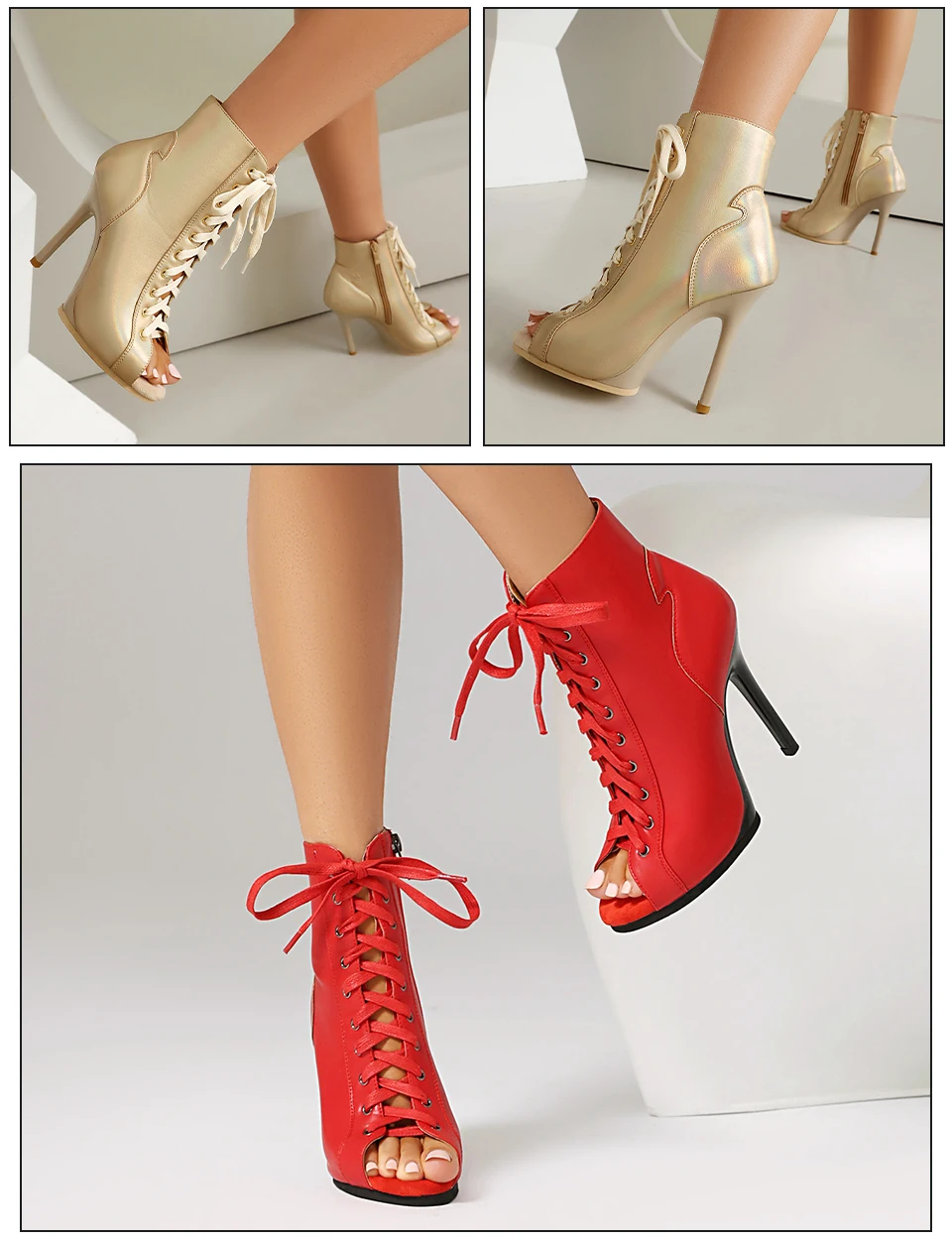 DKZSYIM Woman Dance Shoes lace-up Dance Booties for Ladies Dance Heels Ballroom Shoes Girls Women Sexy Stiletto High Heels Microfiber leather+mesh Rubber sole Heel 11.5CM
