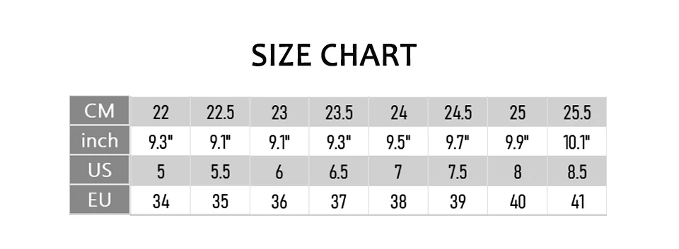 Our purchase homepage will display the size charts of different countries, you can choose the size according to your country or the length of your feet. The width of our shoes is normal, maybe this shoe is not suitable for people who are too thin or too fat. If you are not sure about the size, please contact us first. We will help you solve the problem as soon as possible.