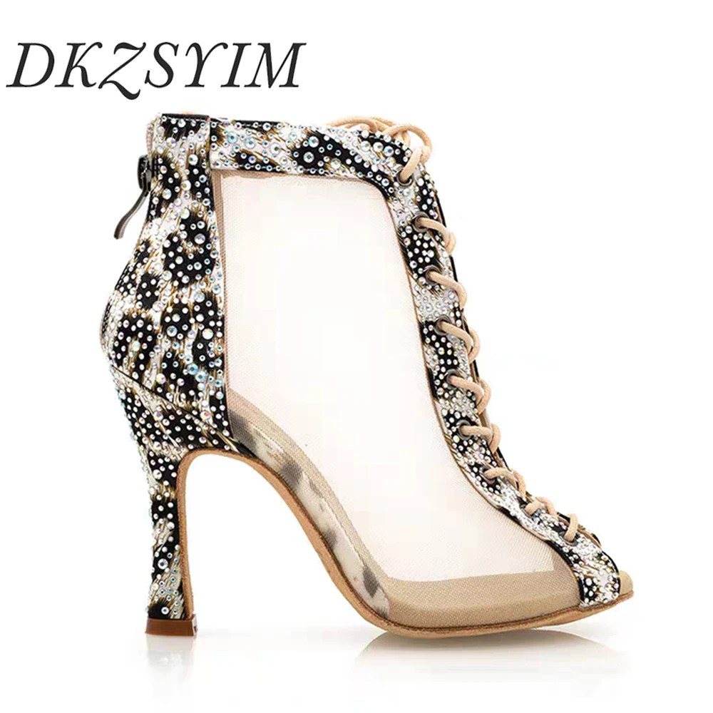 DKZSYIM Women Latin Dance Shoes High Heels Women’s Party Boots Black Gilrs Salsa Dancing Shoes Ballroom Sexy stilettos 2023 6/7.5/8.5/9/10CM