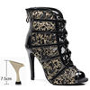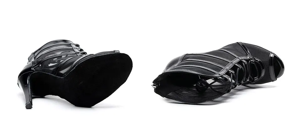 DKZSYIM Women Latin Dance Shoes Black High Top Ballroom Tango Salsa Dancing Boots Lace-Up Soft Bottom Party Dance Shoes 6-10CM
