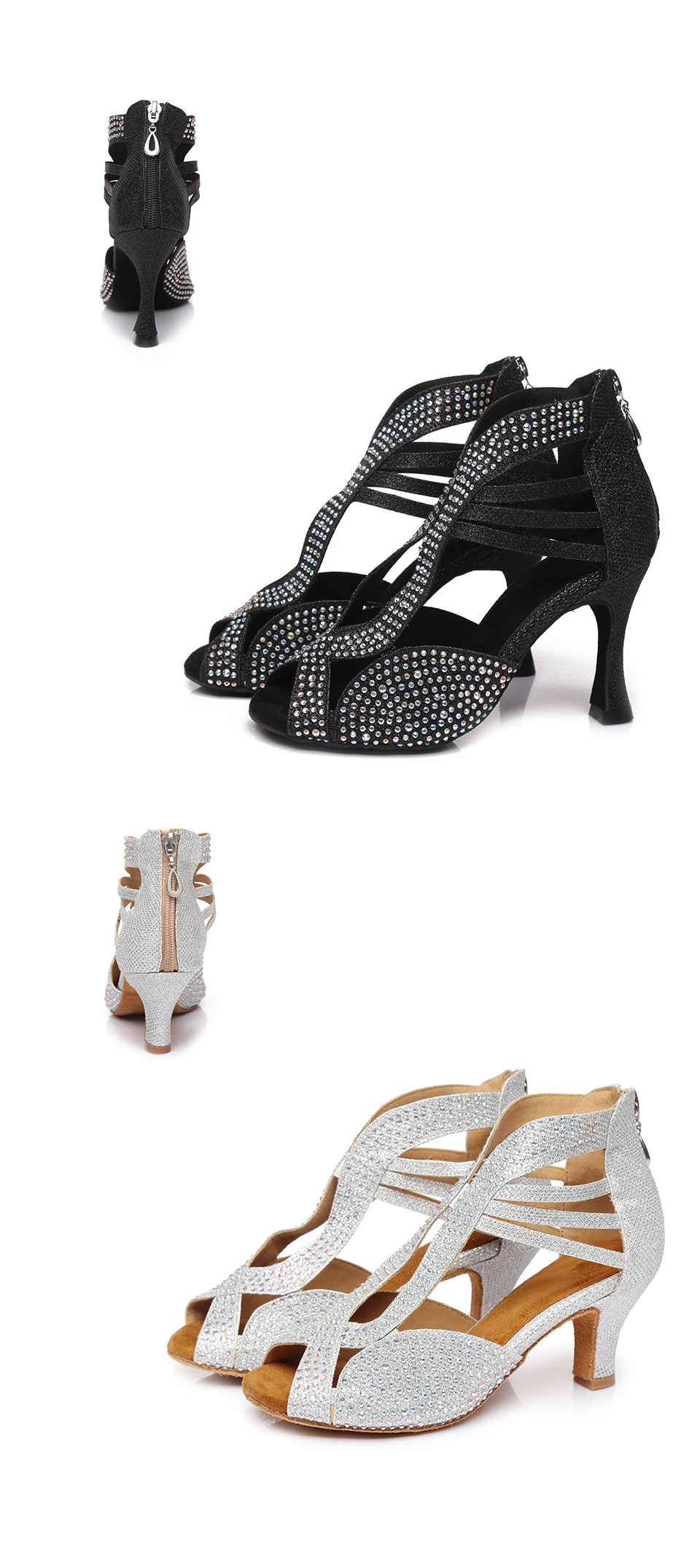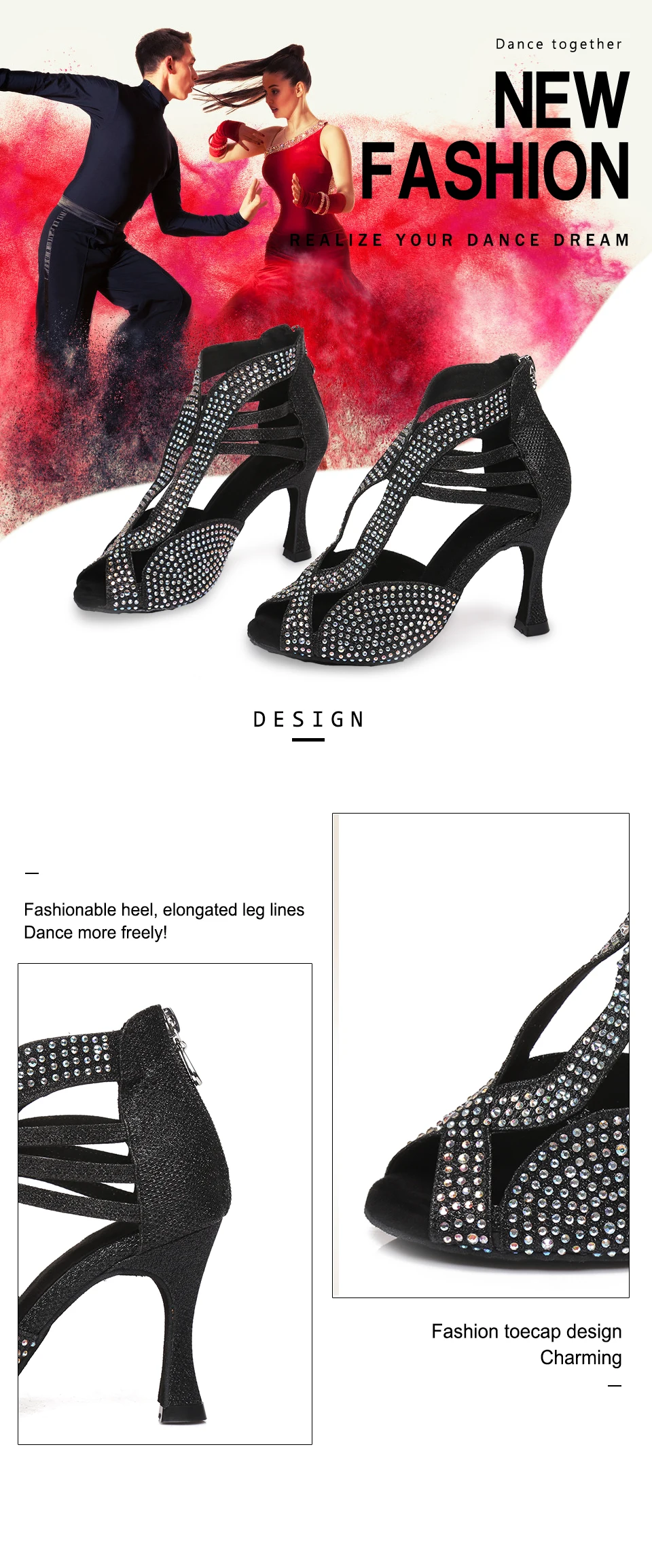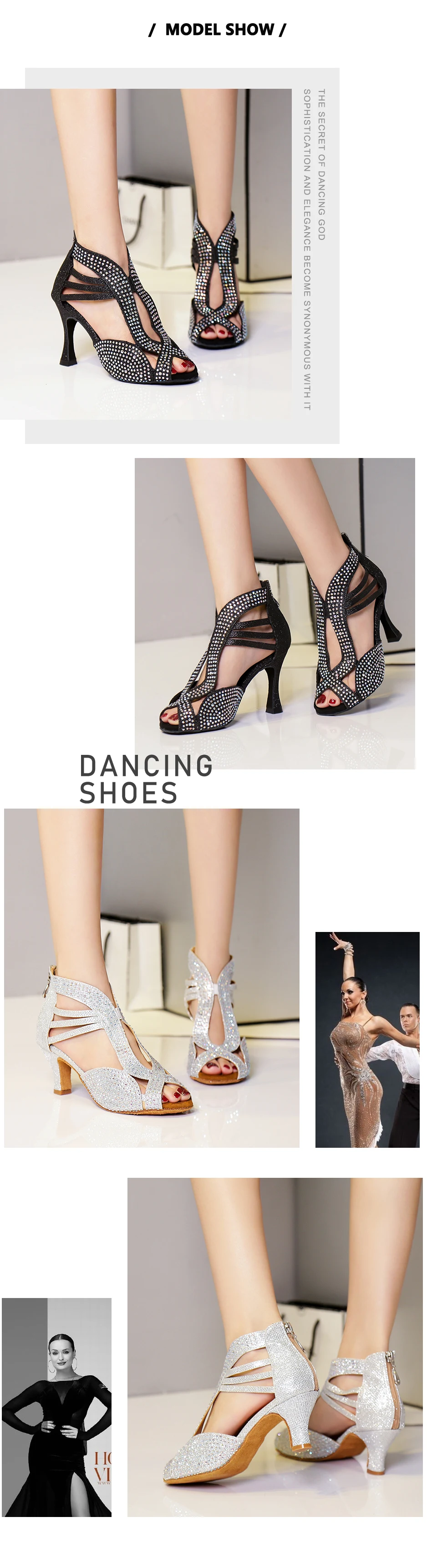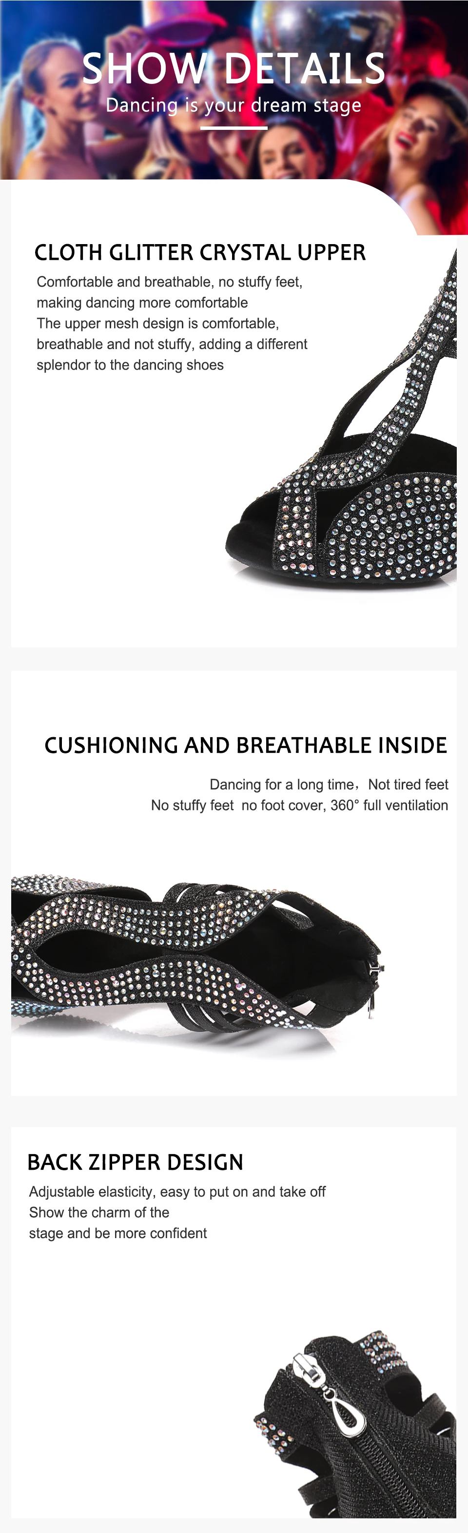 DKZSYIM Women Latin Dance Shoes Glitter Pratice Shoes Comfortable Ballroom Dancing Shoes Soft sole Dance High Heels Wholesal