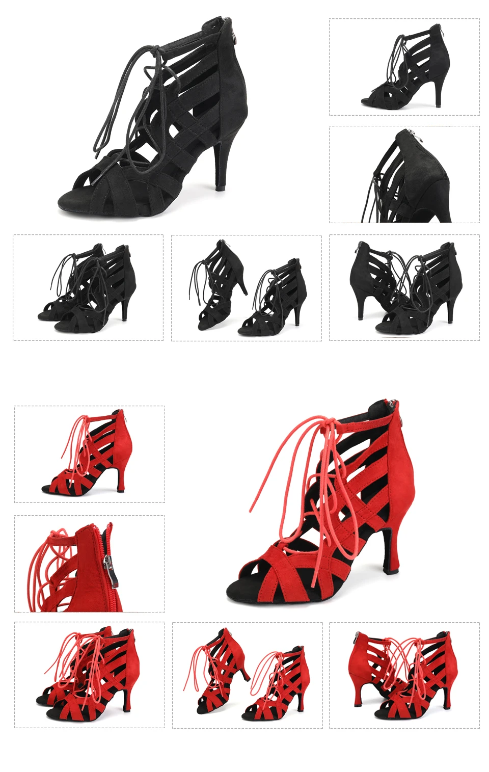 DKZSYIM Women Latin Dance Shoes High Heels Cut-Outs Thin Heels Dance Boots For Ladies Women’s Dancing shoes SALSA/Ballroom Heel 6/7.5/8.5/9/10CM