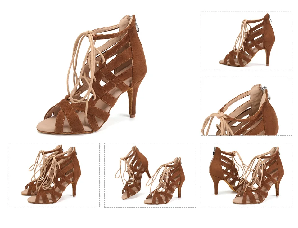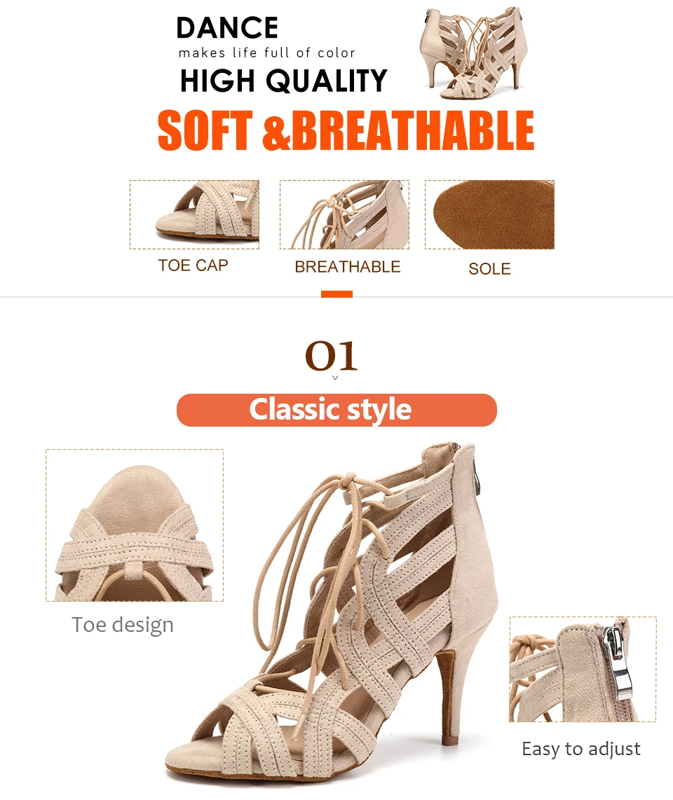 DKZSYIM Women Latin Dance Shoes High Heels Cut-Outs Thin Heels Dance Boots For Ladies Women’s Dancing shoes SALSA/Ballroom