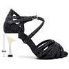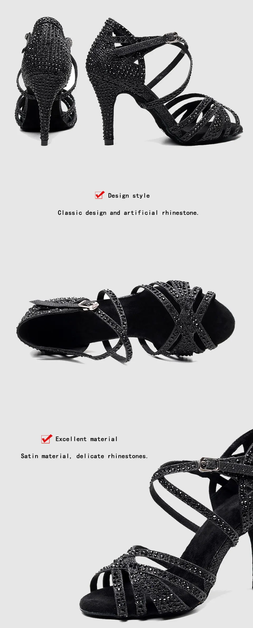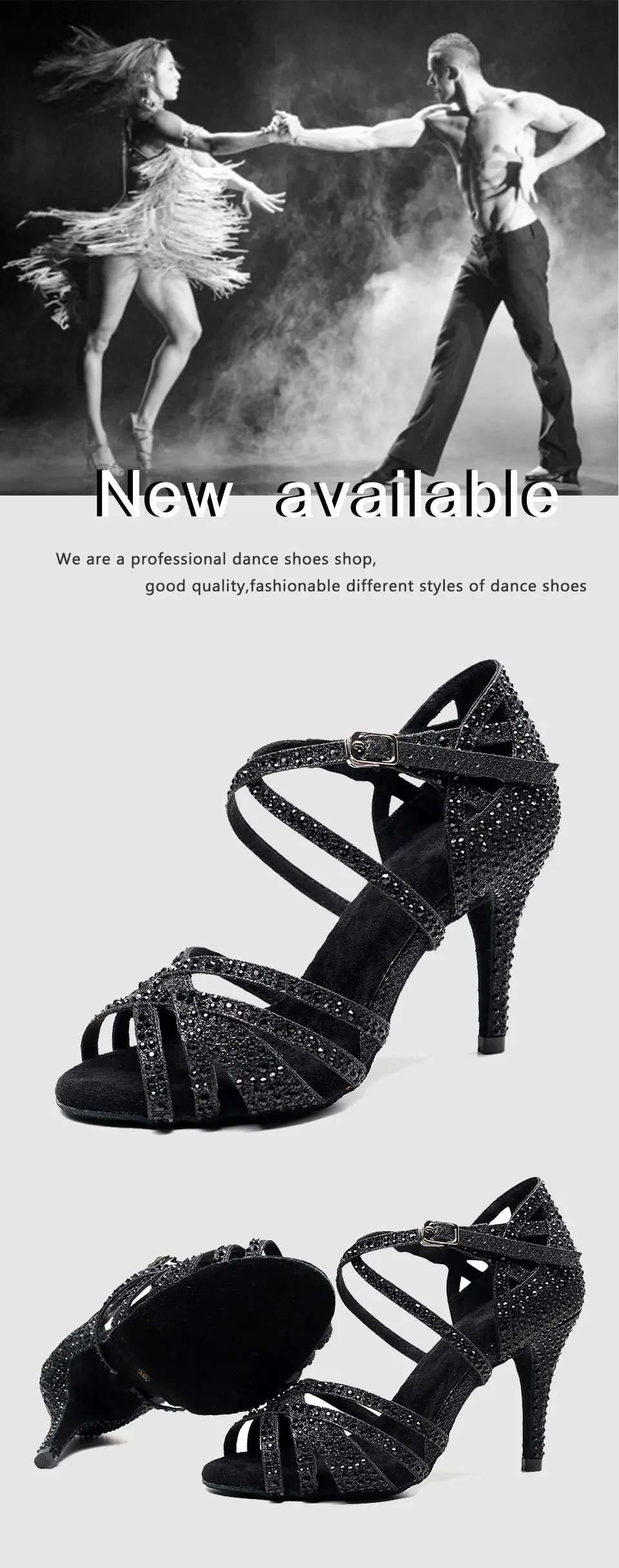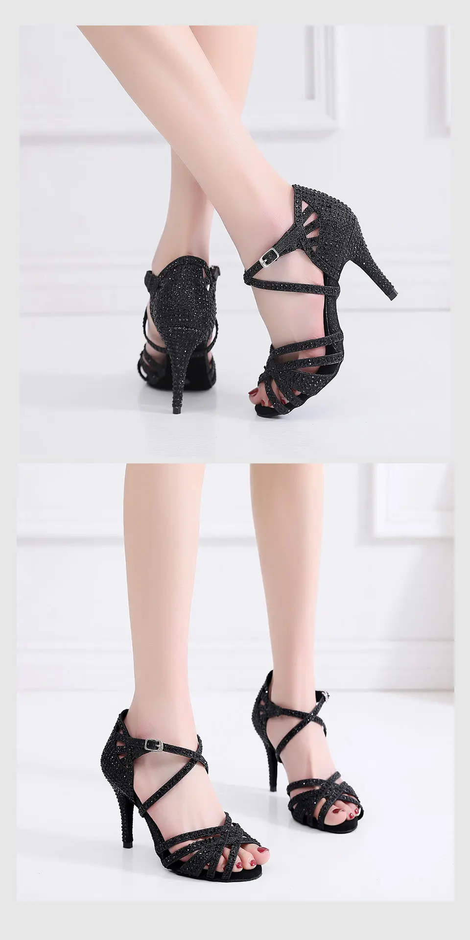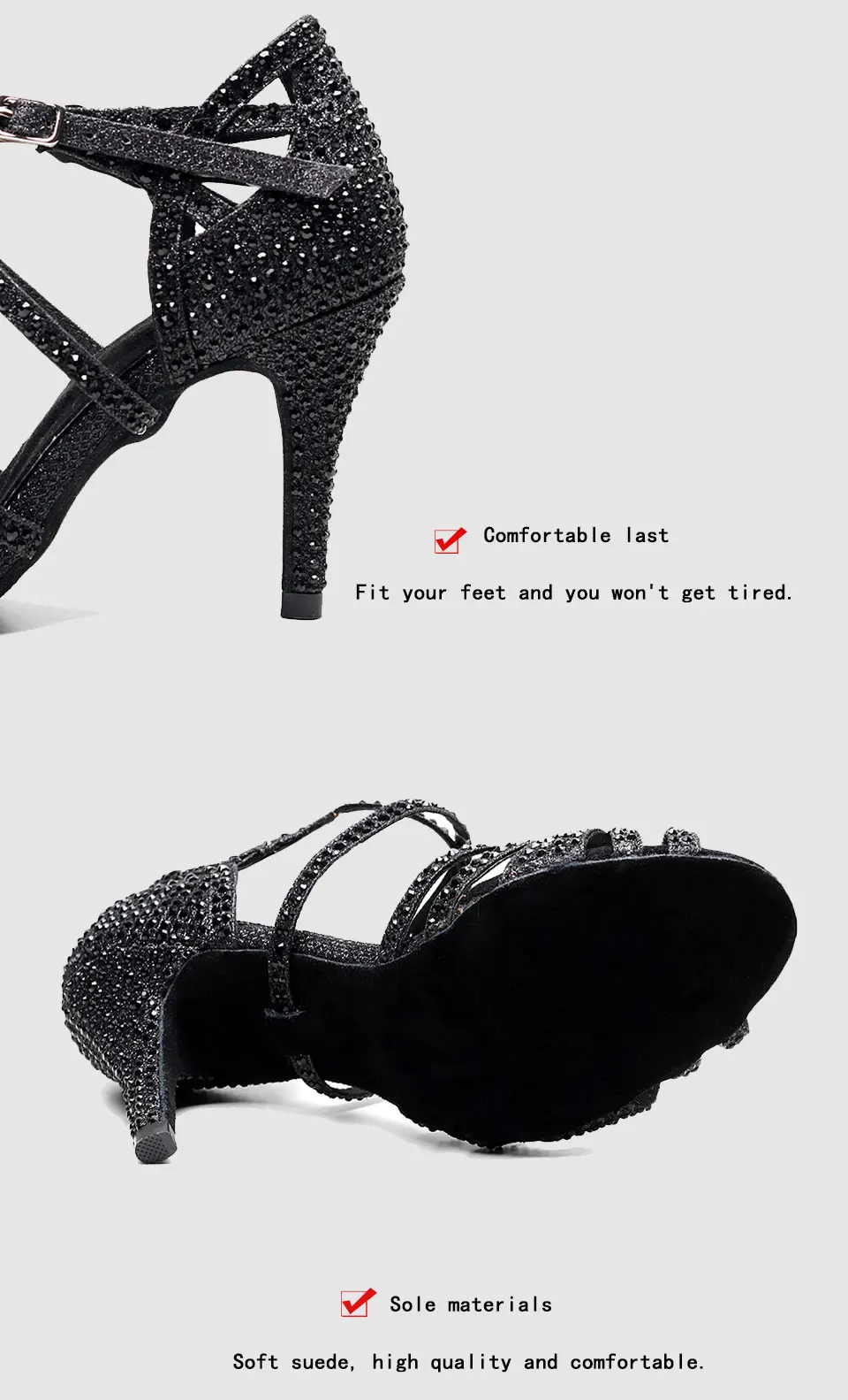 DKZSYIM Women Latin Dance shoes rhineston Ballroom High Heels Tango Shoes Salsa Sandals Girls Fashion Dancing Shoes Ladies