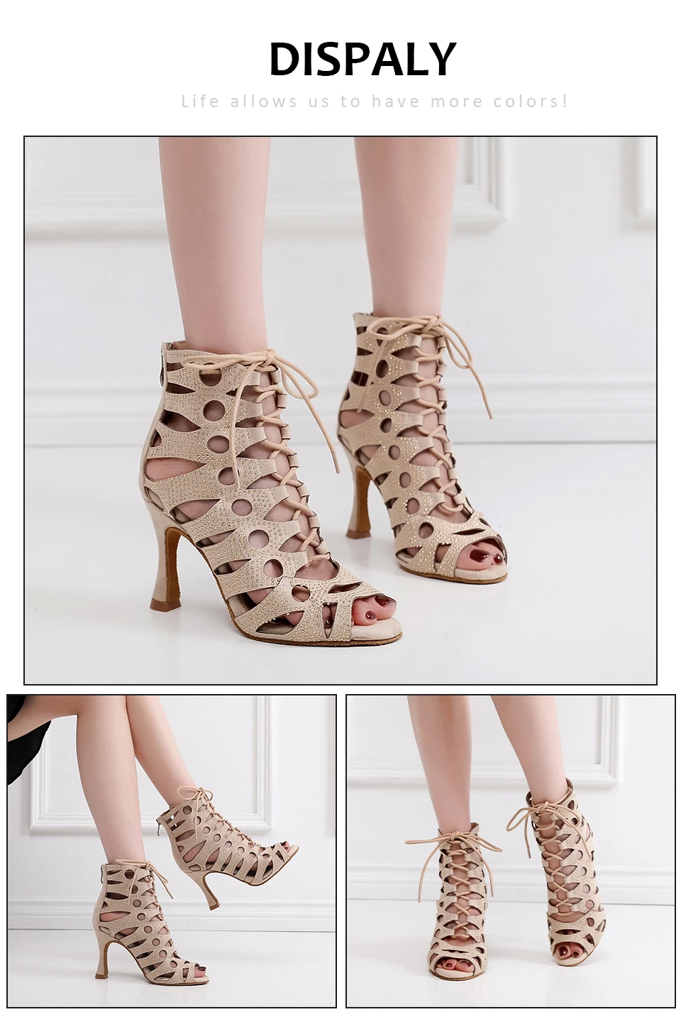 DKZSYIM New Women Rhinestone Dance Shoes Ladies Dance Boots High Heels soft sole Girls Women Ballroom Dancing Shoes Sexy Stilettos soft sole