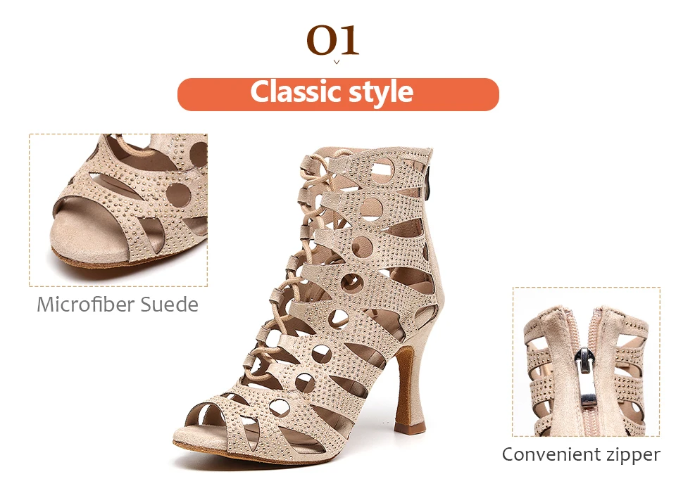 DKZSYIM Women Rhinestone Dance Shoes Ladies Dance Boots High Heels soft sole Girls Women Ballroom Dancing Shoes Sexy Stilettos