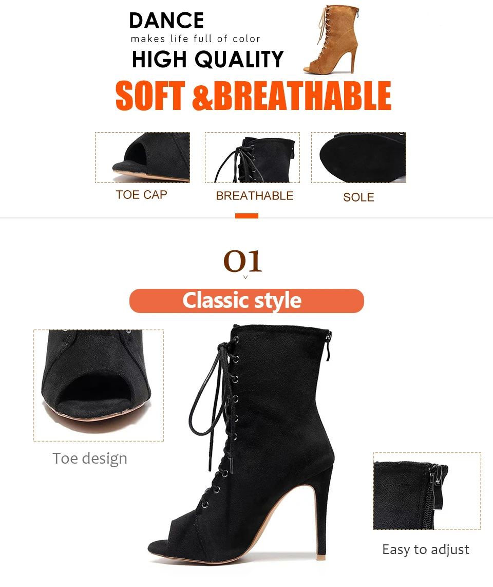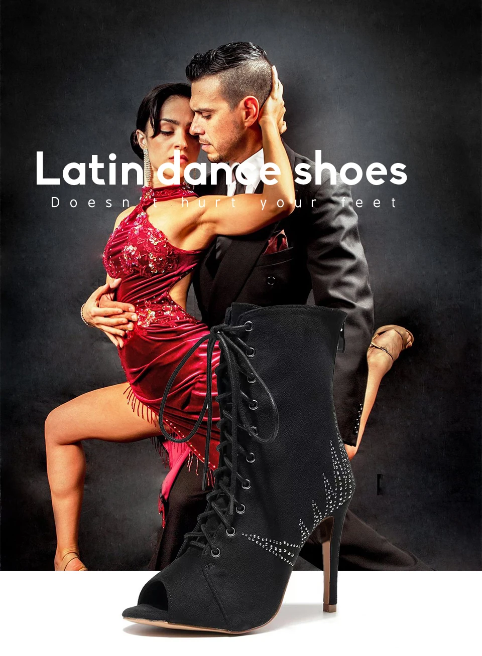 DKZSYIM Women Suede Black Boots Latin Dance Shoes High Heels Dance Shoes Salsa Dancing Shoes Sexy Stilettos For Women Spring