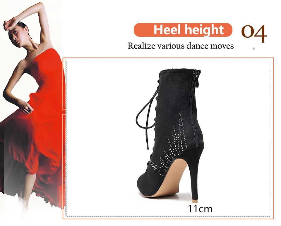 DKZSYIM Women Suede Black Boots Latin Dance Shoes High Heels Dance Shoes Salsa Dancing Shoes Sexy Stilettos For Women Spring Ballroom Shoes Booties Heel 8.5/9/10/11CM New