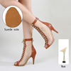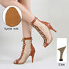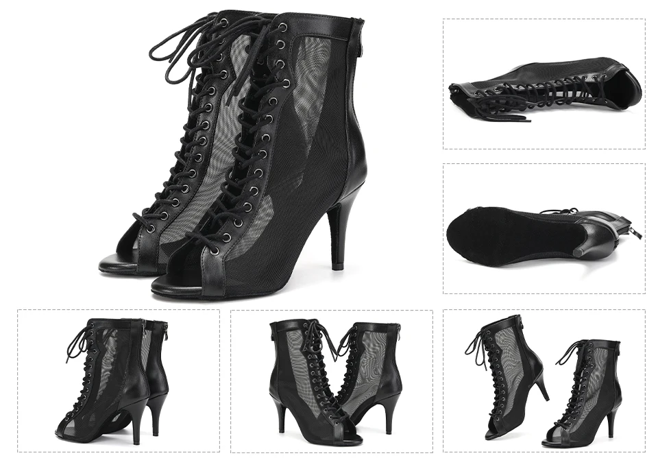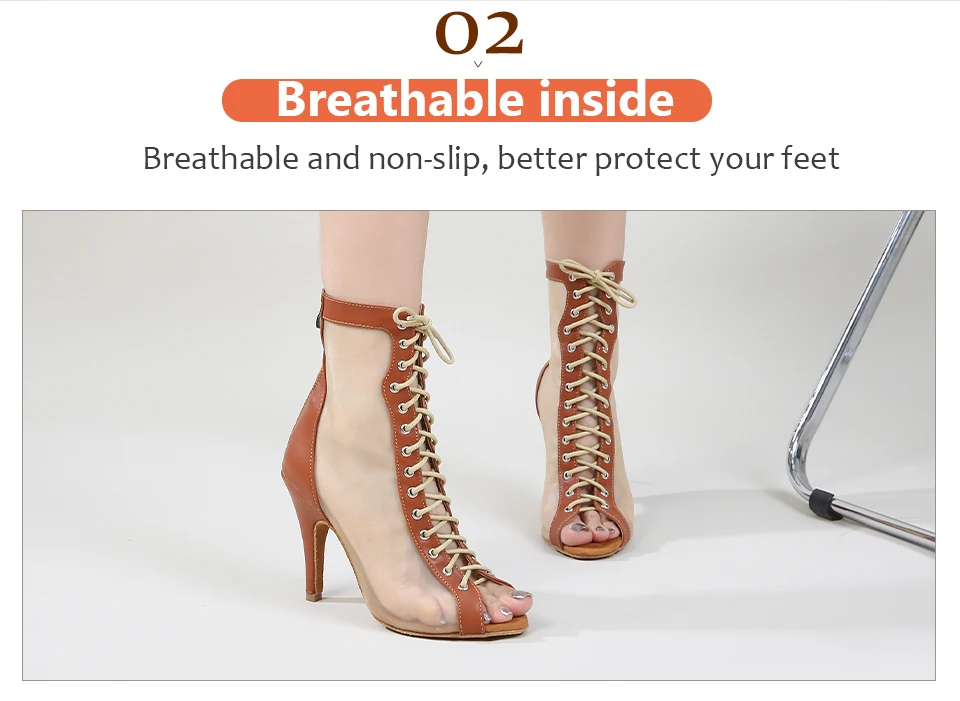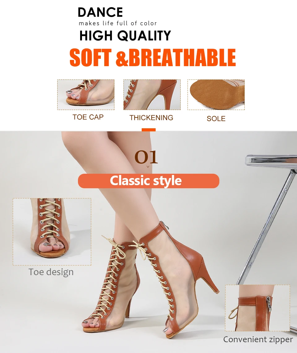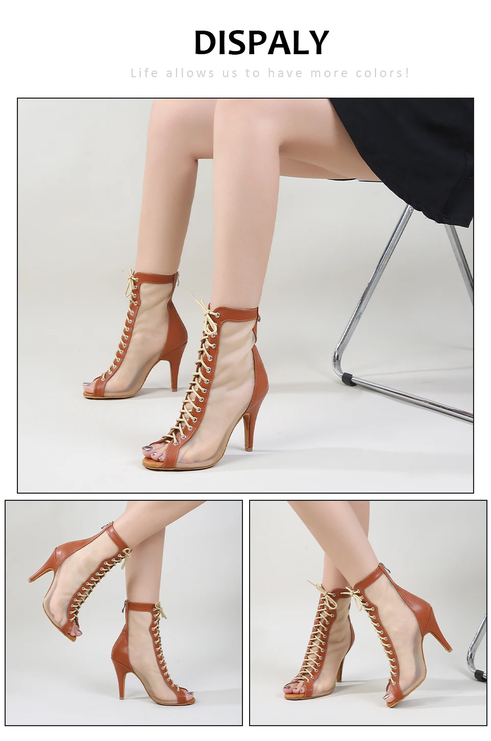 DKZSYIM Women’s Dance Shoes Brown/Black Mesh Boots stilettos heels Shoes Ladies Girls Dancing Boots Women Ballroom Dance Shoes Suede sole wholesale