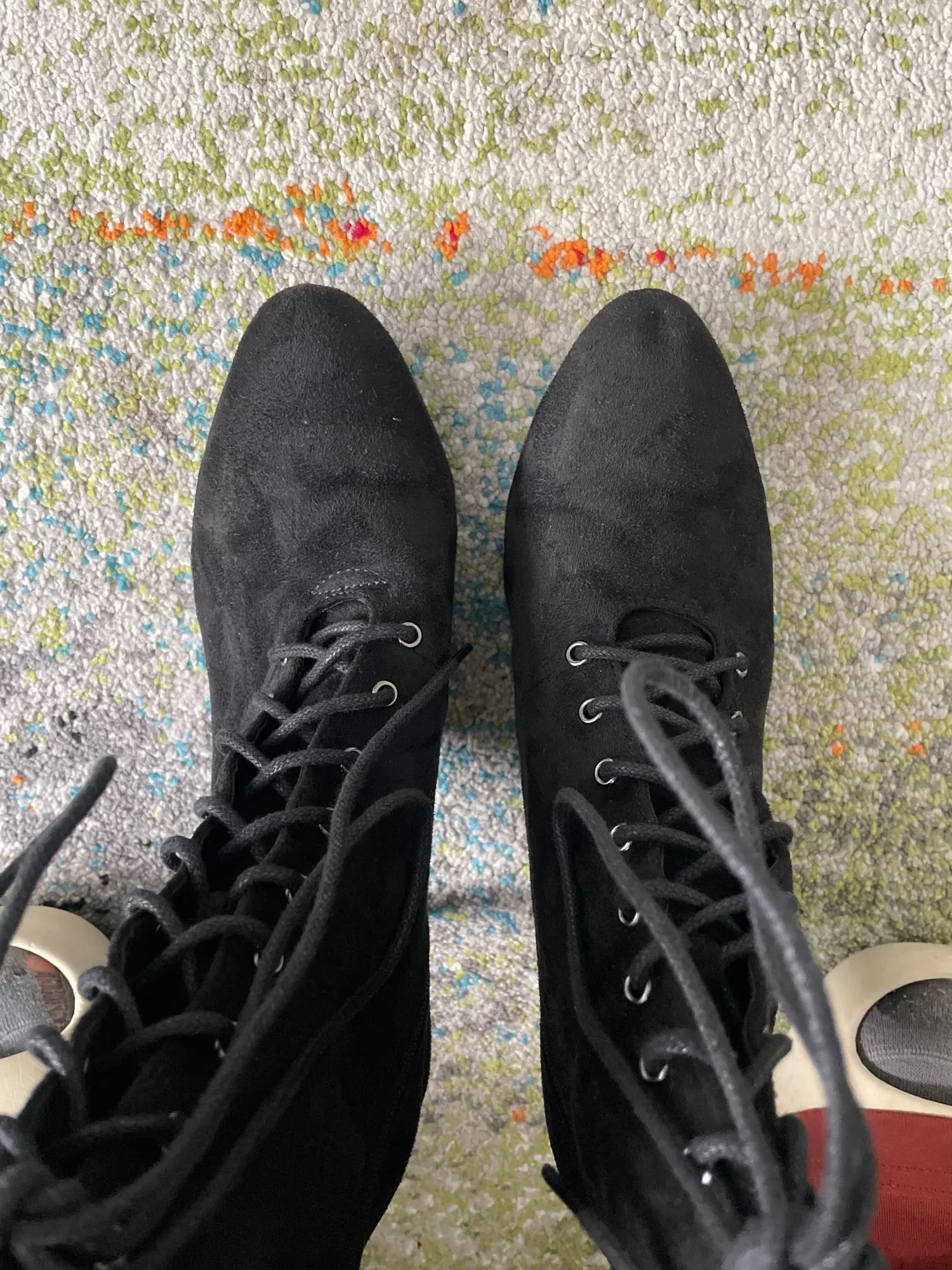 The shoes fit a male 43 and don’t feel too narrow. But also good tightness for security while dancing