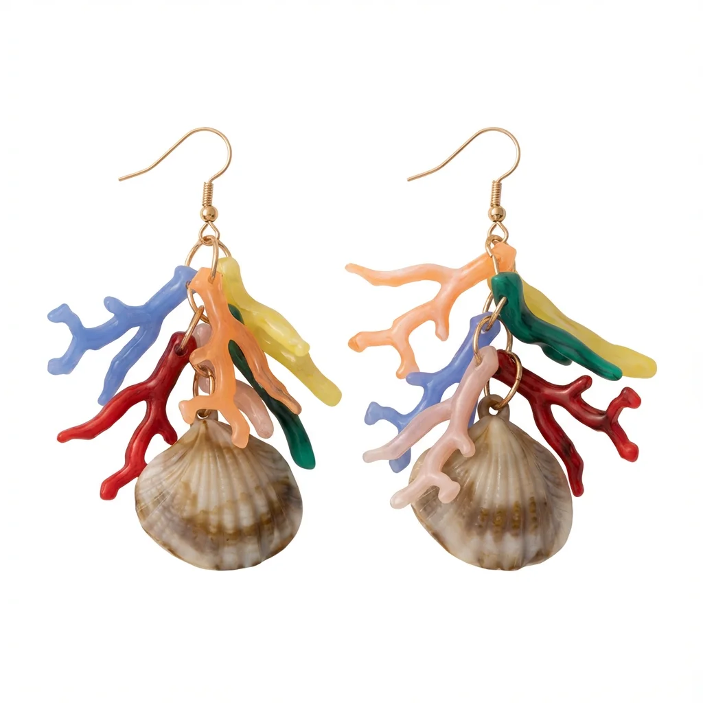 Dopamine Vacation Style Colorful Acrylic Corals Dangle Earrings for Women Bohemian Shell Pendant Earring Summer Beach Jewelry