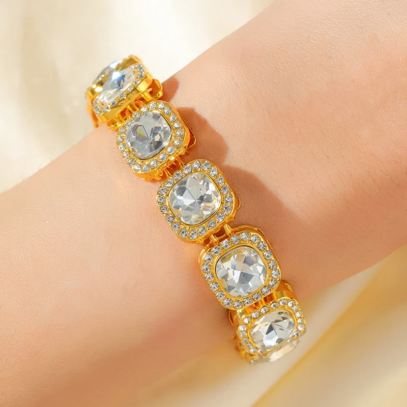 EILIECK 316L Stainless Steel Colored Zirconia Crystal Bracelet Bangles For Women Trendy Wrist Chain Waterproof Jewelry Gift