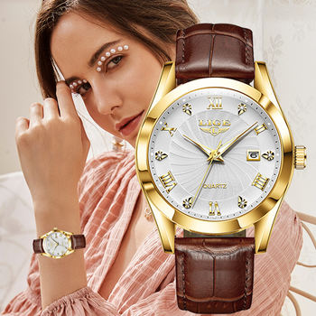 LIGE Luxury Fashion Women Watch Leather Strap Waterproof Casual Sport Quartz Wristwatch 24 hour Moon Phase Clock Watch for Women