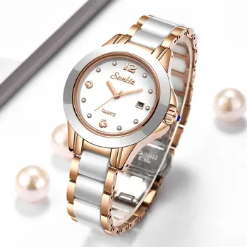 Sunkta Fashion Casual Quartz Woman Watch Elegant Luxury Ceramics Diamond Calendar Waterproof Ladies Women’s Watches Montre Femme