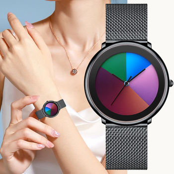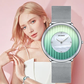 New Unique LIGE Fashion Changing Color Dial Striped Woman Watch Casual Ultra-Thin Mesh Belt Waterproof Quartz Women’s Wristwatch